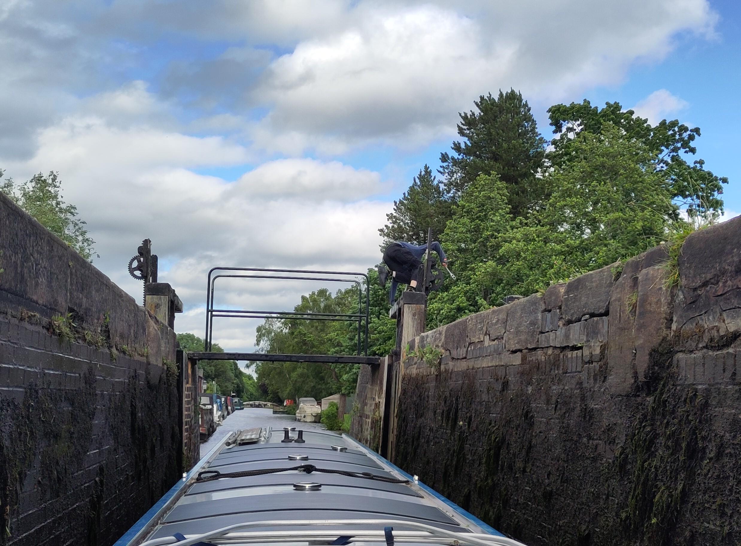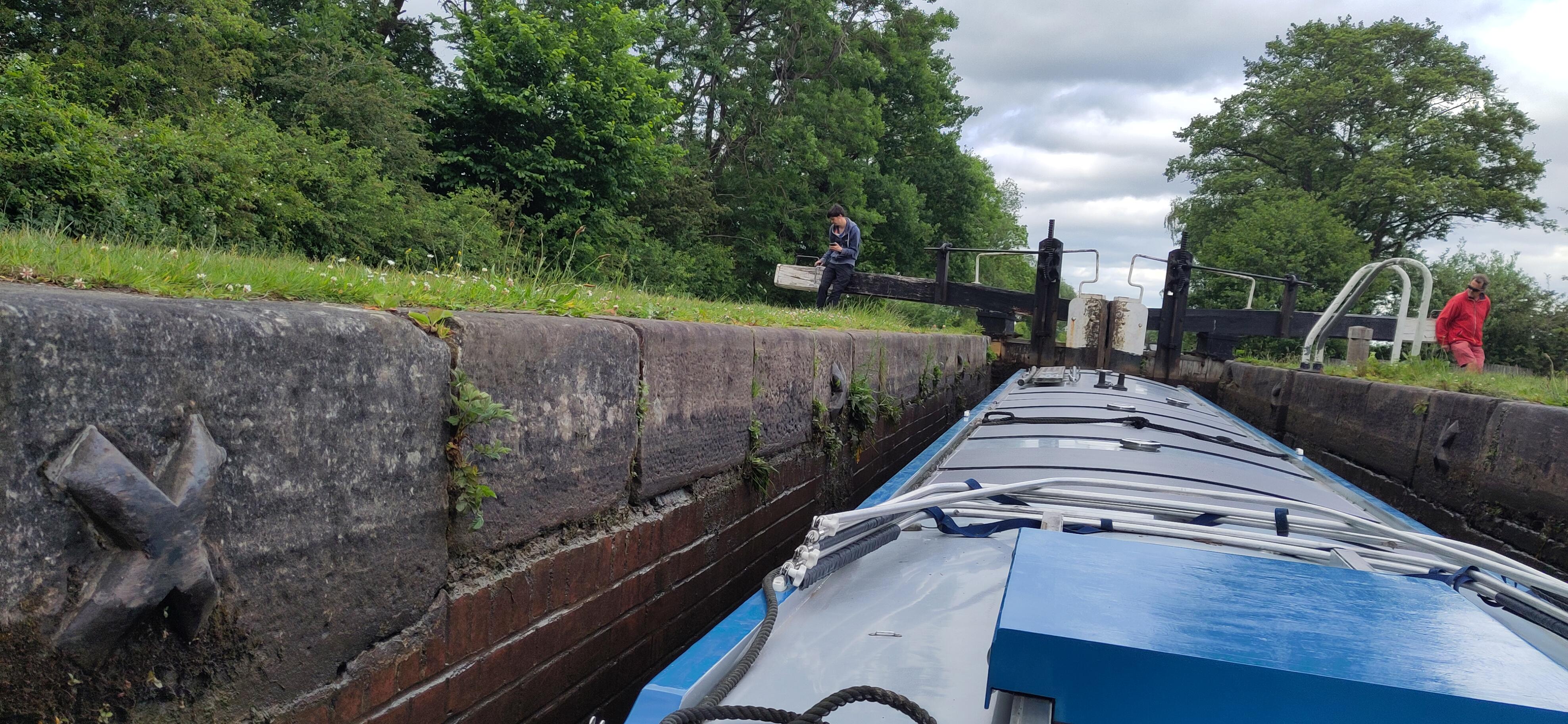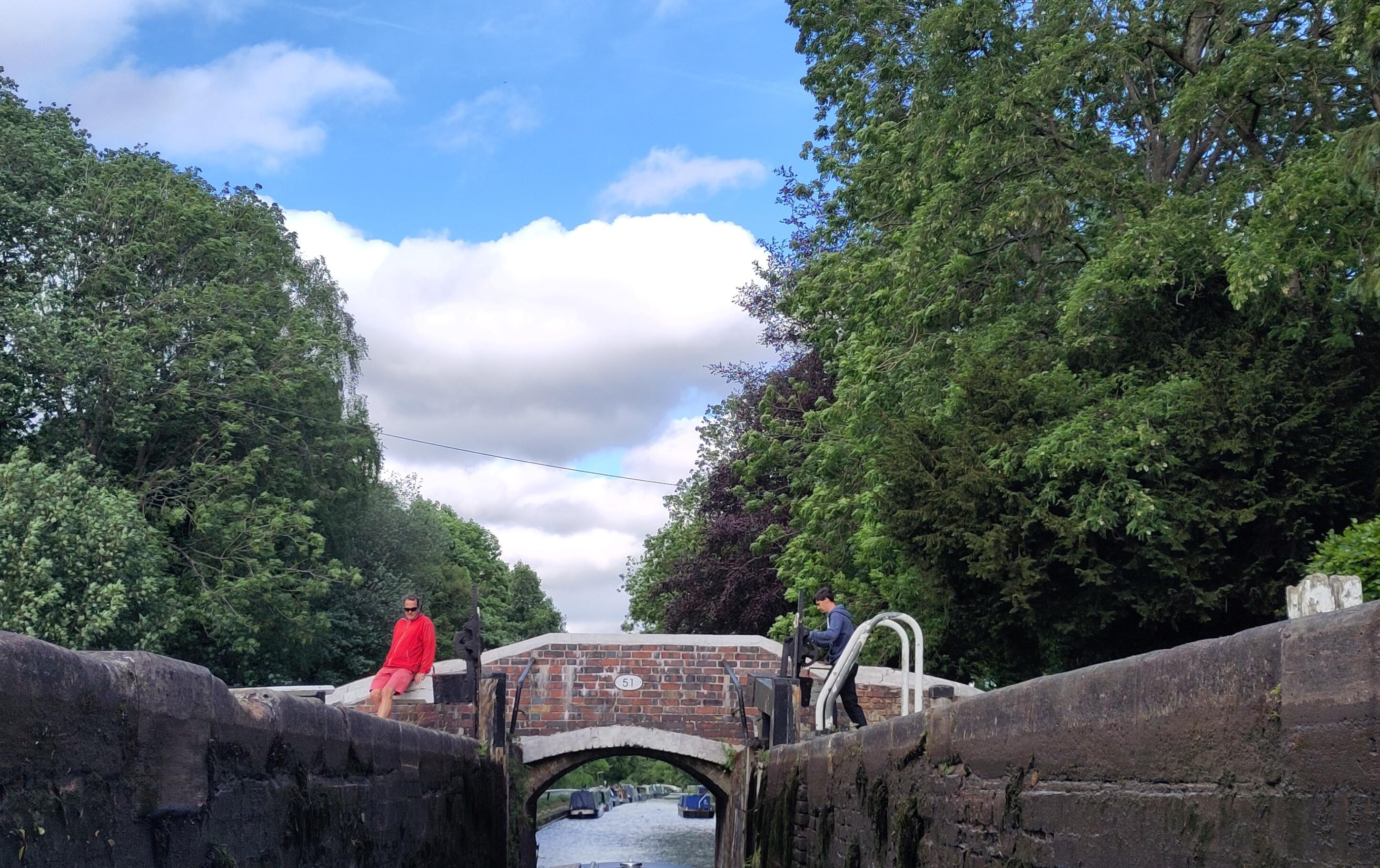 At the next that there were queues on both sides, so we ended up assisting a few people through before, getting through ourselves. A lone boater asked if he could be "cheeky" and stay in his boat. We had three lockers available, the woman from the boat ahead of us was there too, so of course he could stay put. As I chatted to the woman, she said this was why she came here on holiday as everyone was so friendly. She came from Frankfurt. Certainly the boaters are usually up for helping each other and people often say hello as they pass, but she was also taken that people serving the public in shops and pubs, tend to address you as love or darling. It's nice to see someone from other places appreciate aspects of your own culture that you take for granted. Her husband gave a cheery wave.