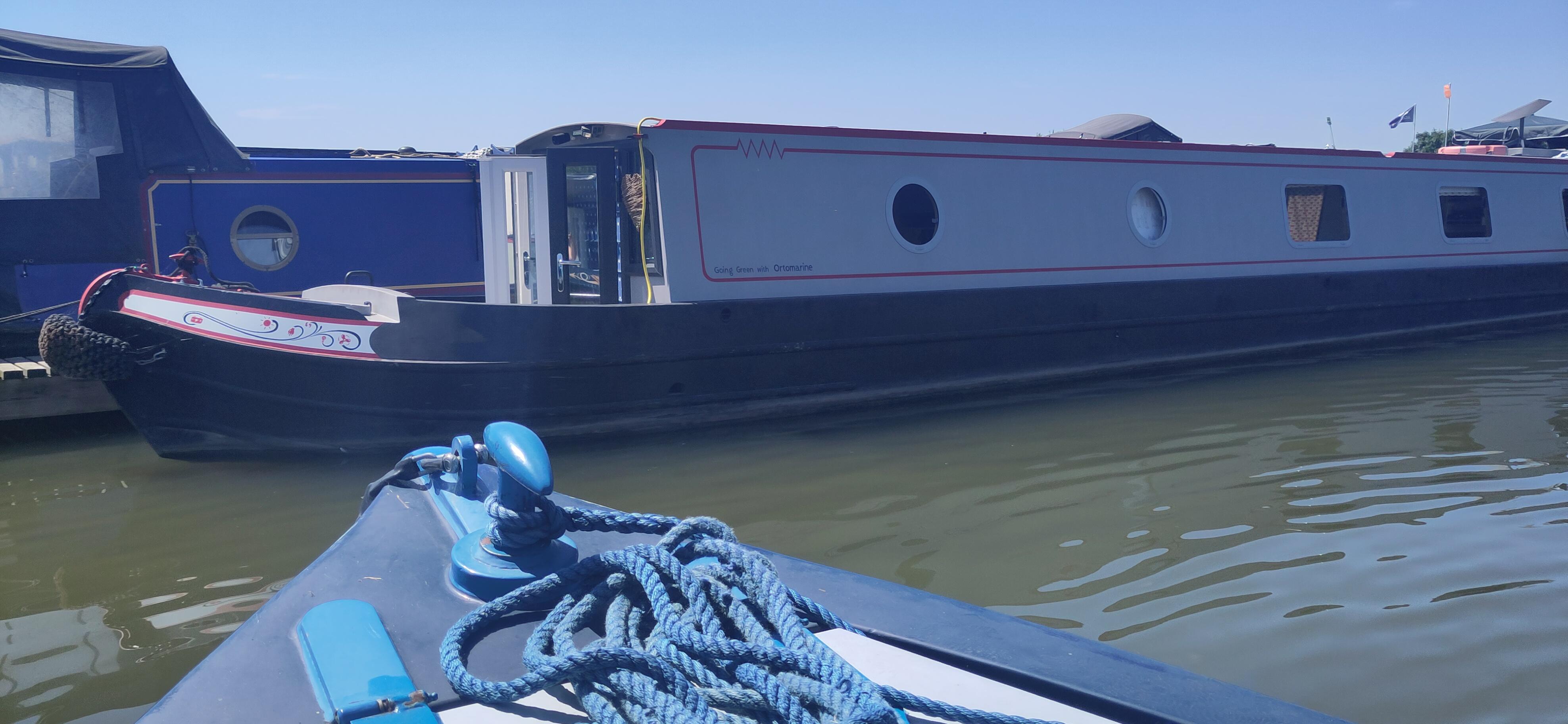Once back at the marina they took their leave. No sooner had we waved off our friends, than we received a message from the Electrika organisers saying there was an evening BYOB meet up, if anyone wanted to socialise. We had a quick bite to eat and a shower. I made up some Pimm's in a lemonade bottle and we went down. The organisers., Paul and Kay were too busy doing last minute organising but we met a few others , some of who said "oh you're on Bartimaeus", in a knowing way, which made me wonder what they knew. We had a nice chat with Barbara and Malcolm (Shane had a good geek out with him) and their friend who joined us. Malcolm had one of the first electric boats, Ampere, and had put it together himself.