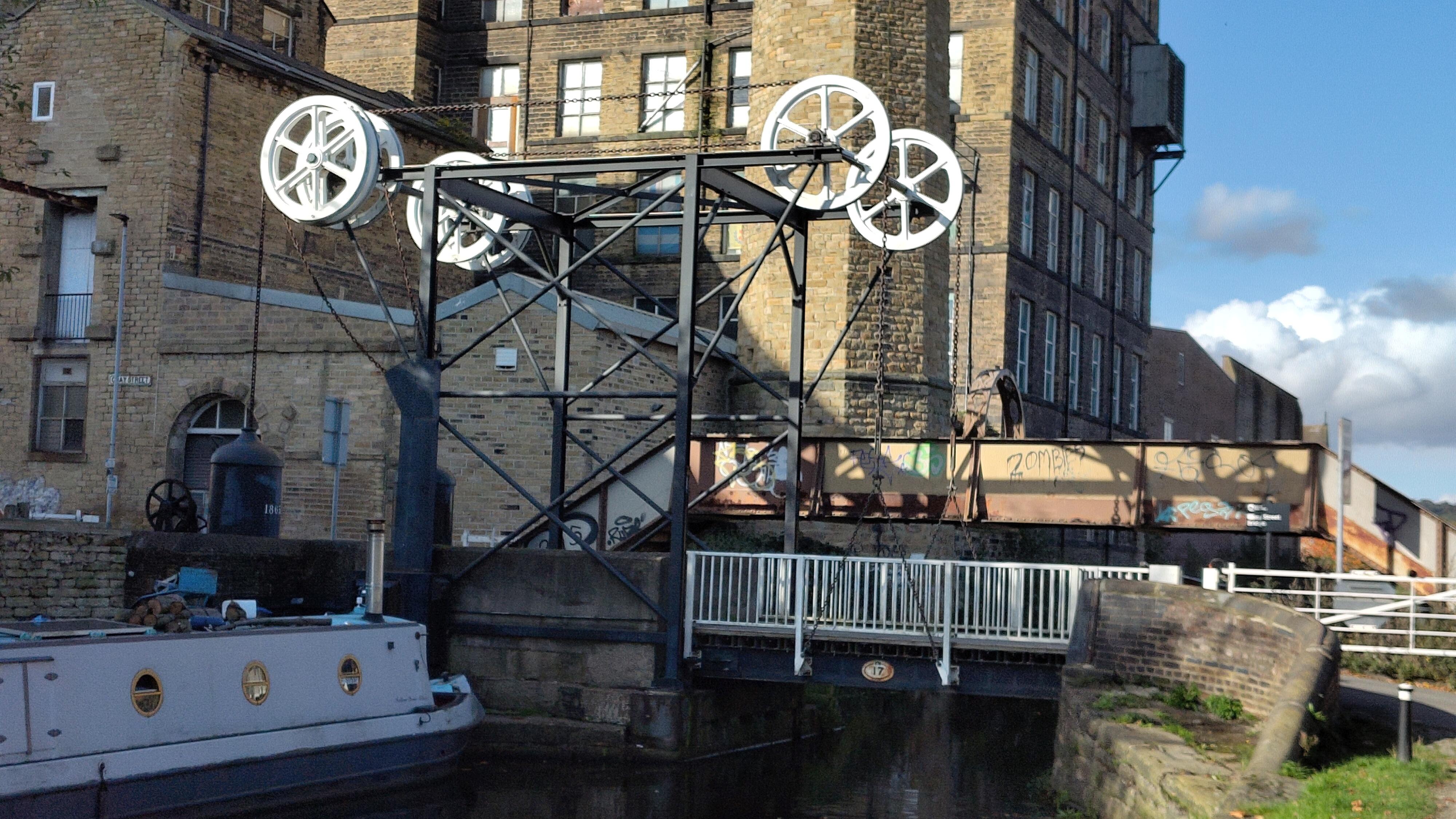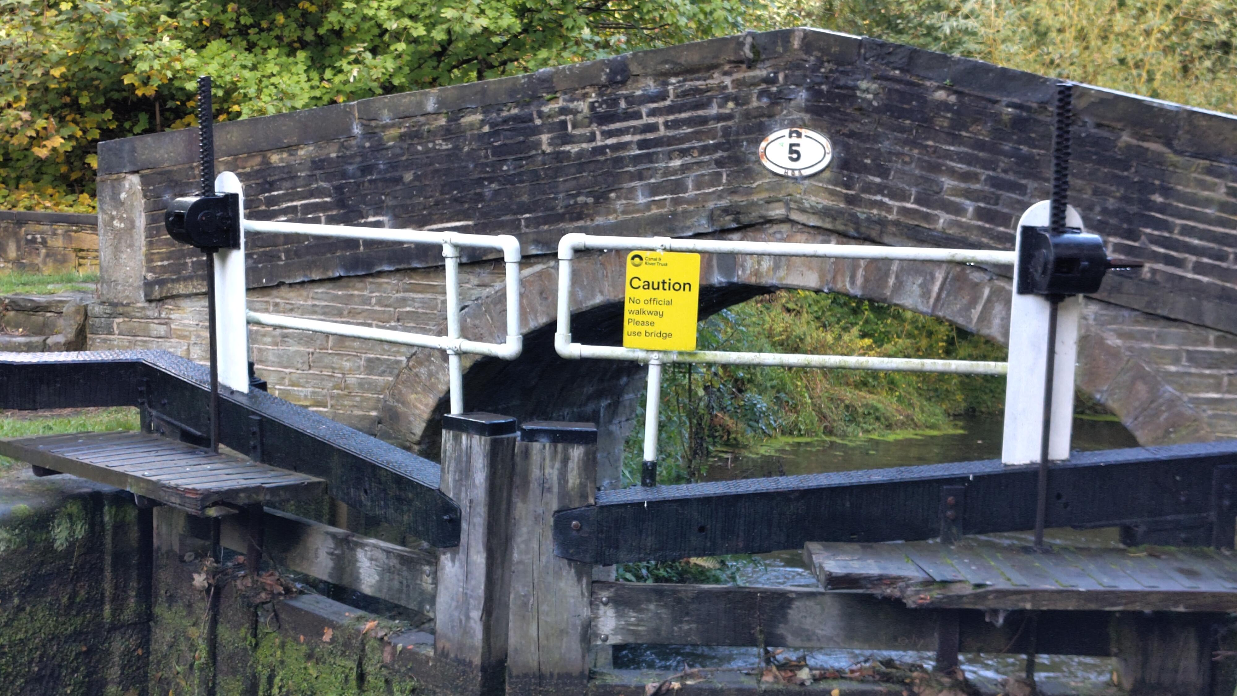 I had managed to get the strop at the stern on to a bollard by now. It wasn’t the best mooring, but it did guarantee that we’d be able to reach the boat. With Clare safely back on the towpath side, we concentrated on the paddles. I tried the ratchet windlass on the nearside one. With the handle horizontal, if I leant my whole weight on it I could just move the paddle. Lifting the handle again and repeating I managed to get the lock to start emptying. Clare had shut the errant gate again, and now the water movement held them shut. I was able to walk round to the other side and repeat the paddle opening.