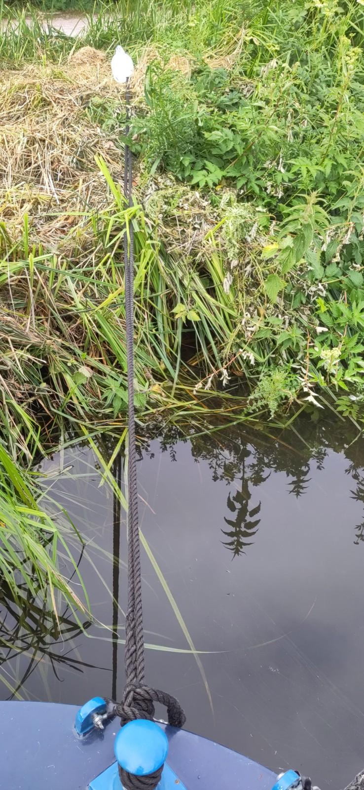 Yesterday we moved on but caught up with Marguerite and did some lock sharing with them in the morning until they moored up to go for a walk. They had mentioned that they liked to share locks and so we were particularly pleased to do so. We carried on further to lunch and as we were having a go at a rather shallow spot a man moored in a wide boat nearby, with a ponytail, (the man, not the boat) stepped along just to offer a hand with the rope. It still proved hard to get in and he suggested we try behind him as folk had gone there before. Again he reached out for the ropes and as I was putting the spikes in he came over to ask us if we’d like some mooring spike covers he had made out of old fenders. He had a similar design himself and made more then realised he didn’t need them. He was pleased to offer them to a new home. They were certainly a bit more fitting and ‘boaty’ looking than the old milk cartons we used, which might just look like we are leaving litter. Their purpose is to make the protruding head of the spike visible and prevent tripping at dusk. We are very happy with them. This morning I could see it would be hard to not notice them, even in long grass. We like to reuse and recycle, but this might be upcycling.