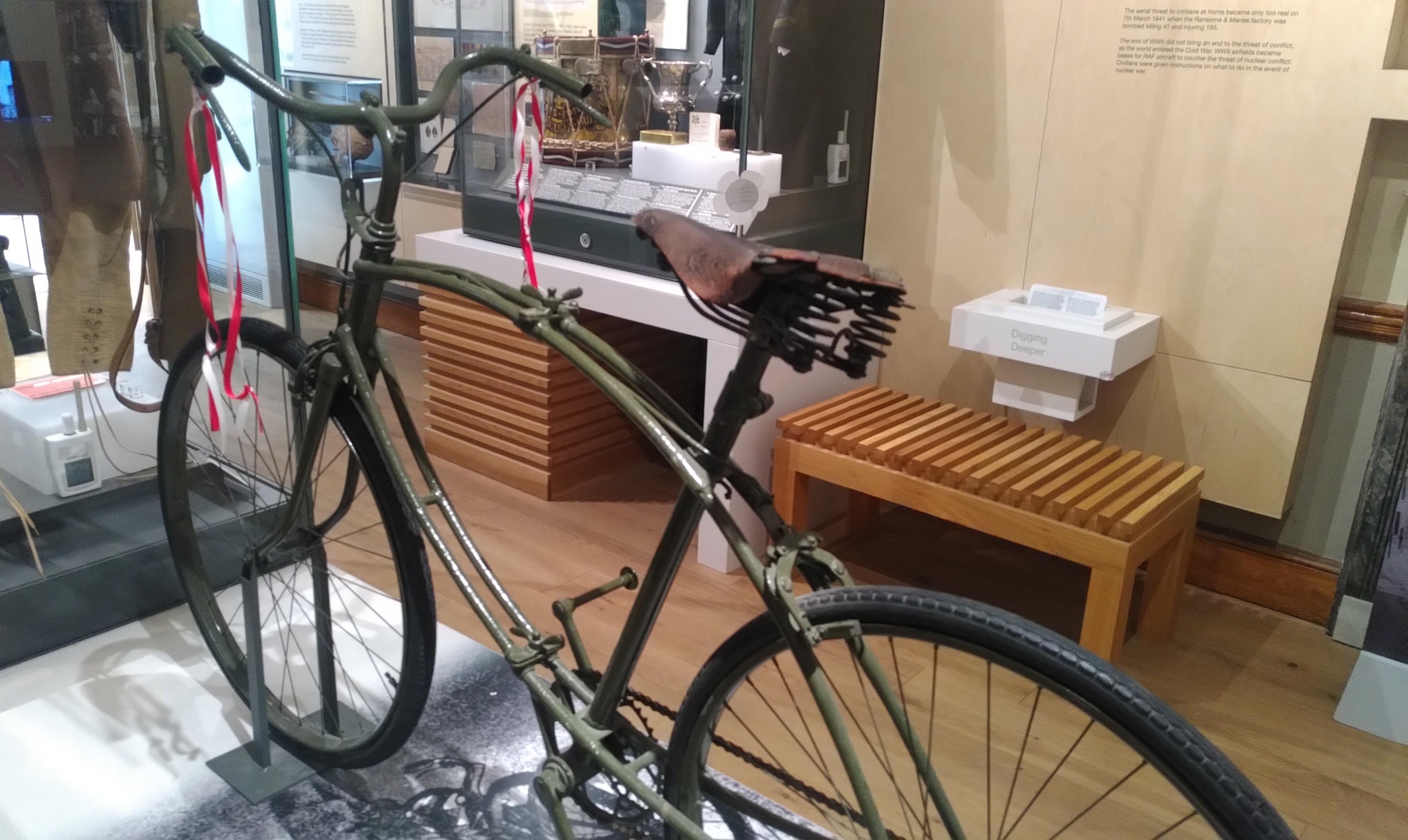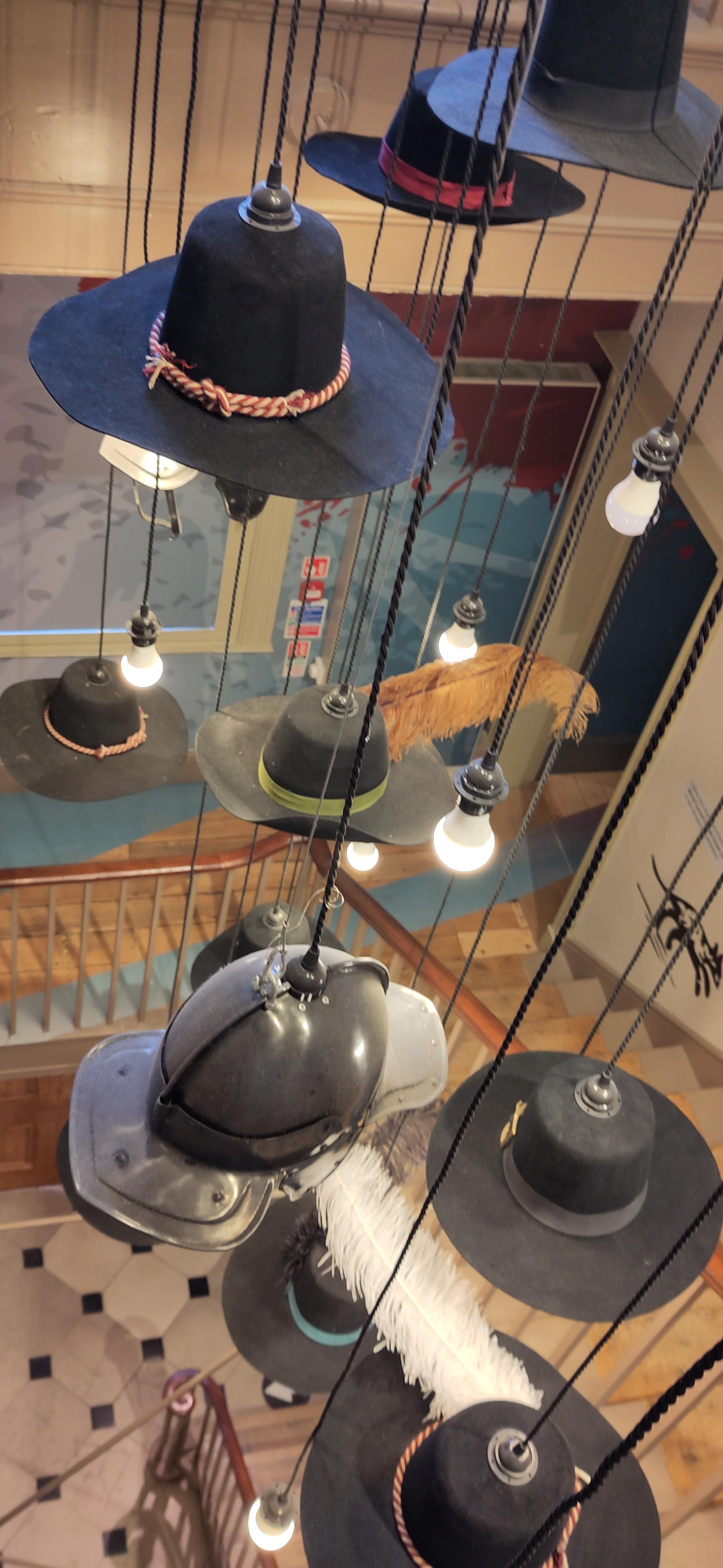 As expected there were many muskets, armour, cannonballs, musketballs and civil war timelines. There was some information on the plague and even more gruesomely the battle field surgeons toolkit. It was a particularly hard tie to live with war tearing towns and families apart. Further up the building, an old grammar school, boys had carved their names in the dormitory walls. There was a reflective section on warfare, refugees, crime and punishment. In the stairwell civil war hats became lampshades, mixing parliamentarians and cavaliers.