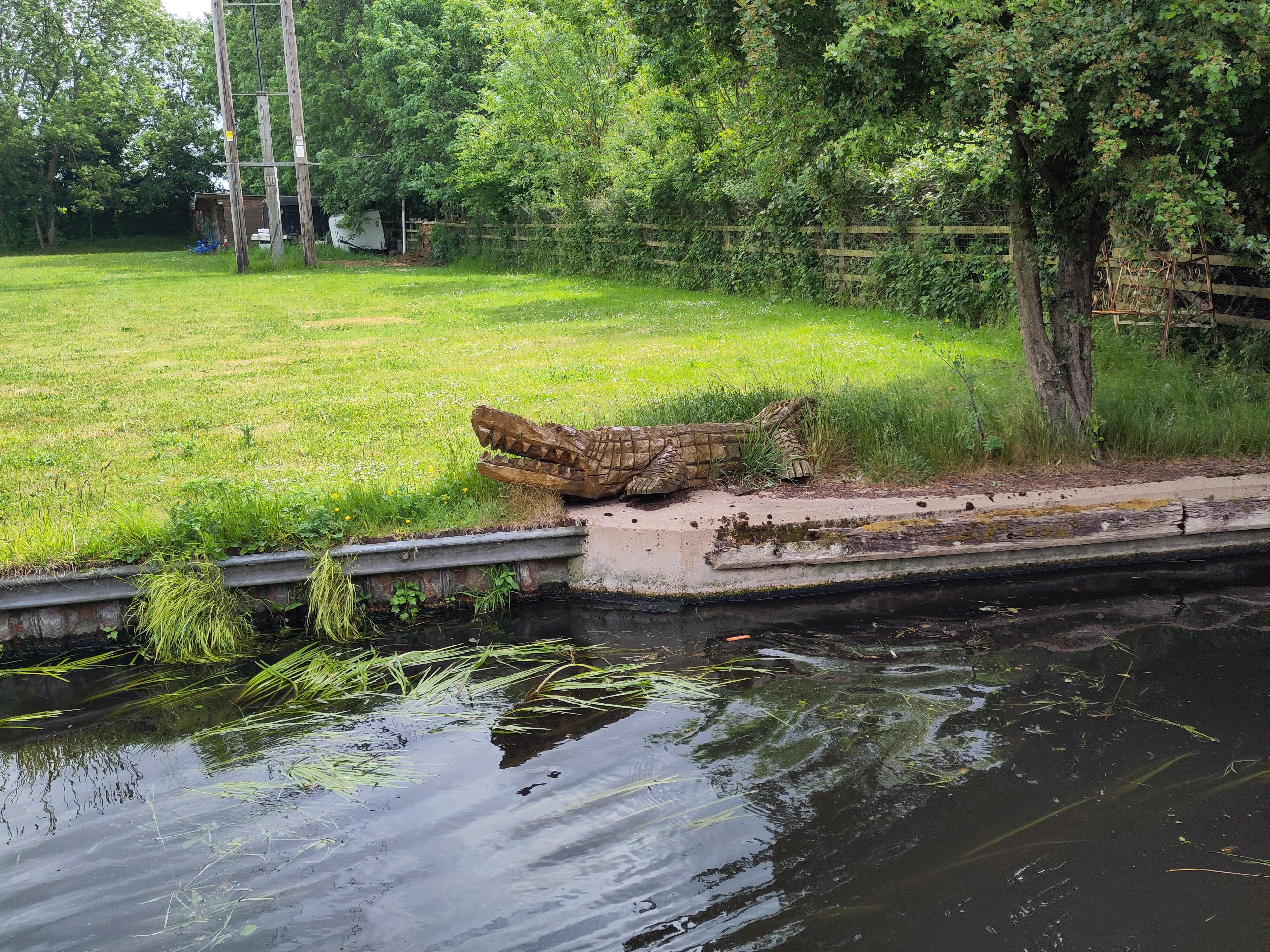 Monday was another day of cruising, slightly cooler than Sunday. Wildlife sightings continued alongside quirky canalside decorations as we pushed on toward Autherley Junction. At one point, I was startled by a yell and a loud splash. A girl riding her bike on the towpath had fallen into the canal, bike and all. Thankfully her parents quickly pulled her, and her bike, out of the water. We stopped the boat to ask if we could offer help - or a towel - but her parents assured us everything was fine.