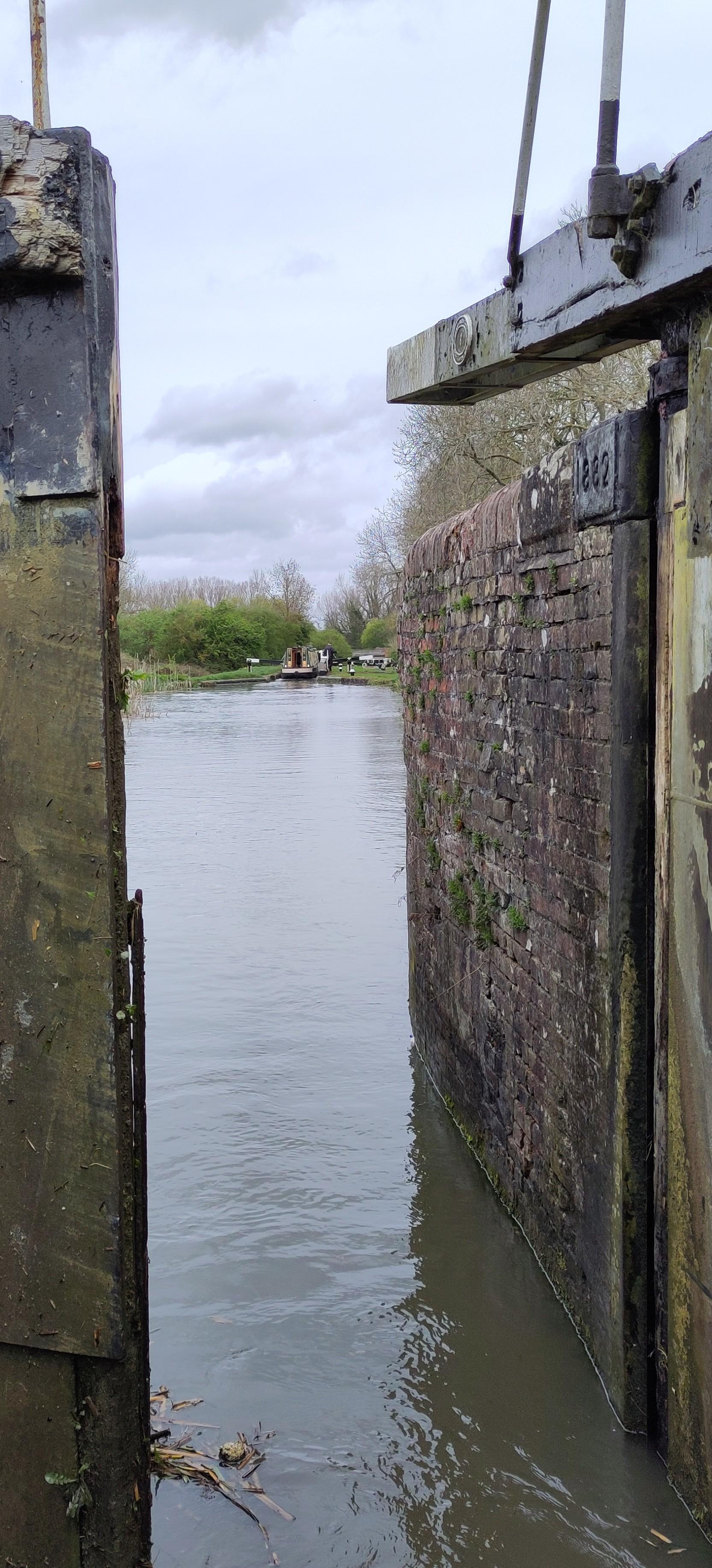 This really helped us do it quickly and I didn’t have much waiting between locks and could just keep going at a reasonable pace. On the way down, I had coasted, dawdled and paused between locks waiting for them to be ready. This was much speedier. It wasn’t long before Shane had got rid of the long sleeved layers. I expected to be standing relatively still, so had a fleece, a cardigan and a long sleeved top on and was a bit chilly. After a bit, some light rain started, earlier than forecasted, so I took the opportunity to get on a few more bits and pieces as I went for my waterproof. At the next lock, we really didn’t look like we were out in the same weather.