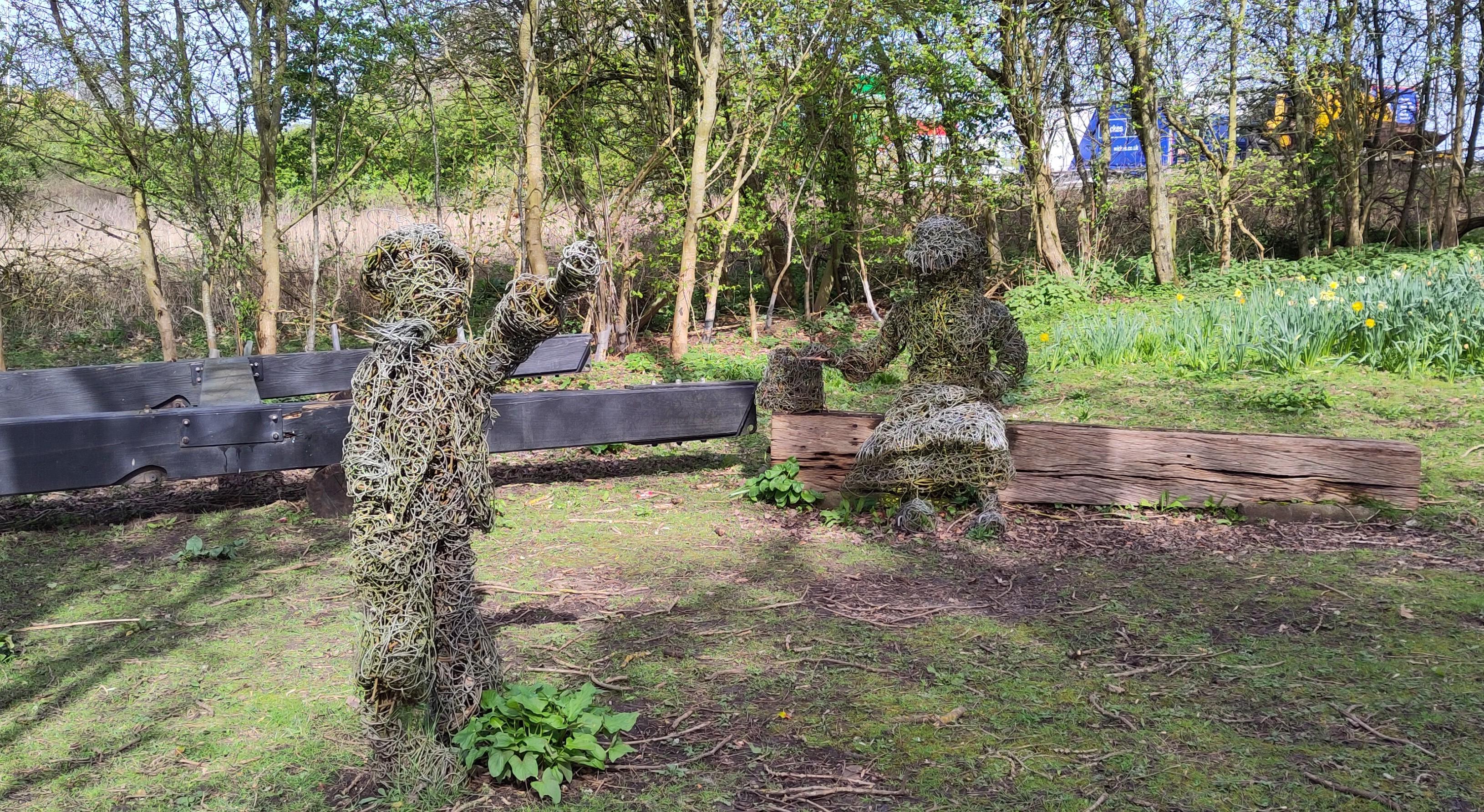 Shane set off and squeezed along past Gayton marina where boats were moored three deep, and we stopped to have lunch before tackling the flight. In deference to my knee, I took the tiller when we got to the lock and Shane took the windlass. At the first lock he got no peace as, first one, then two, excitable collies sniffed his toes and circled him, looking eagerly for snacks, of which he had none. As he went to the next lock a third collie emerged and trotted after him. Nobody was with them but they didn’t stray far from home and ceased following him.