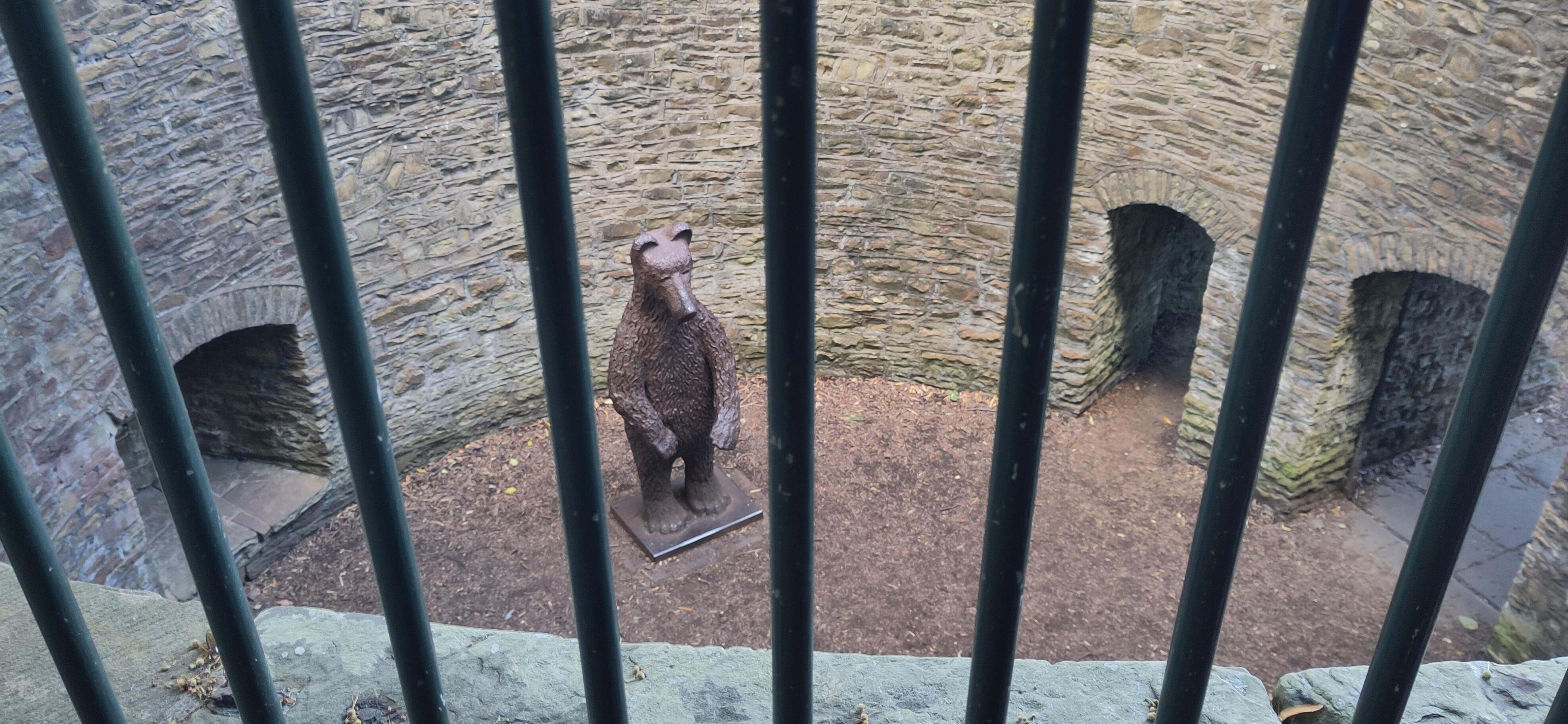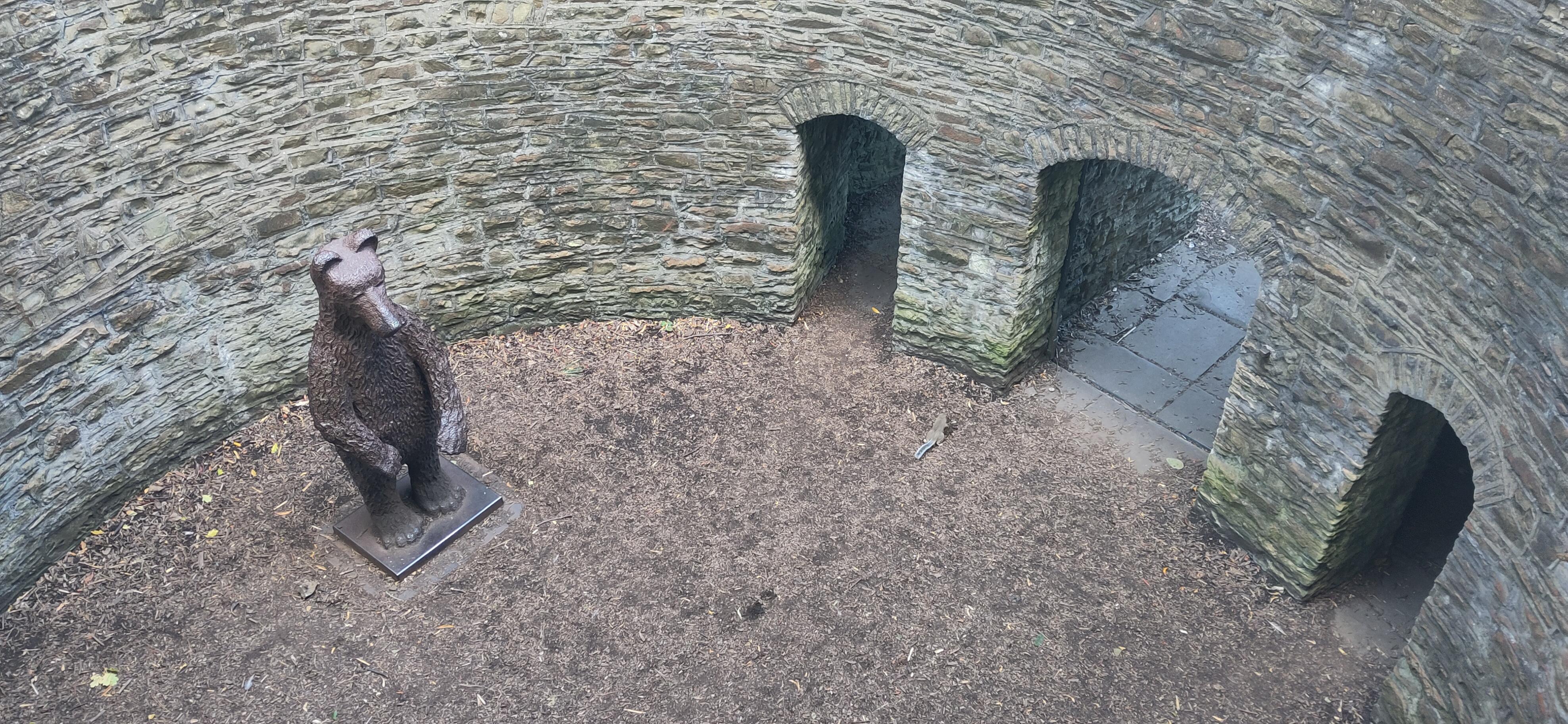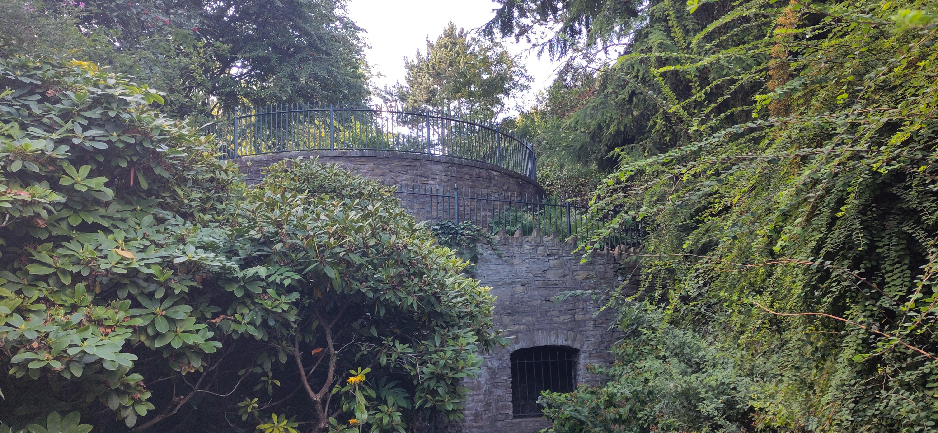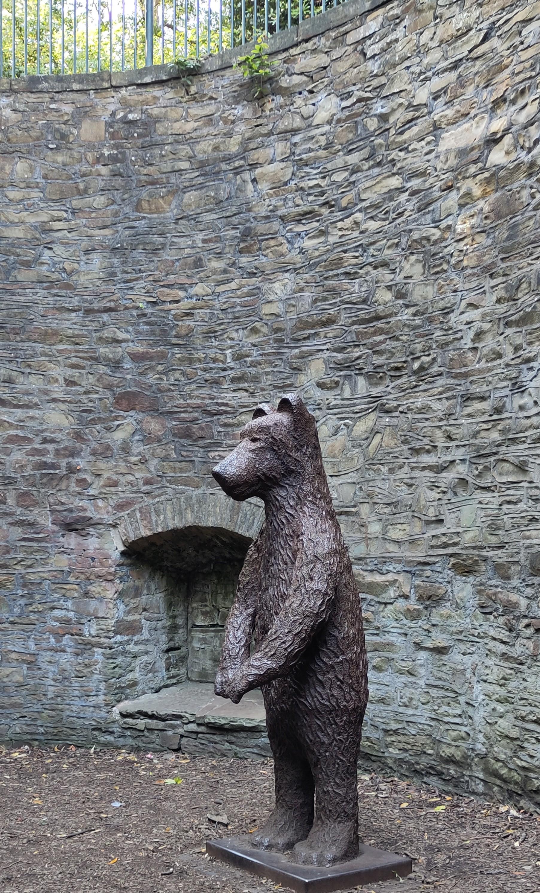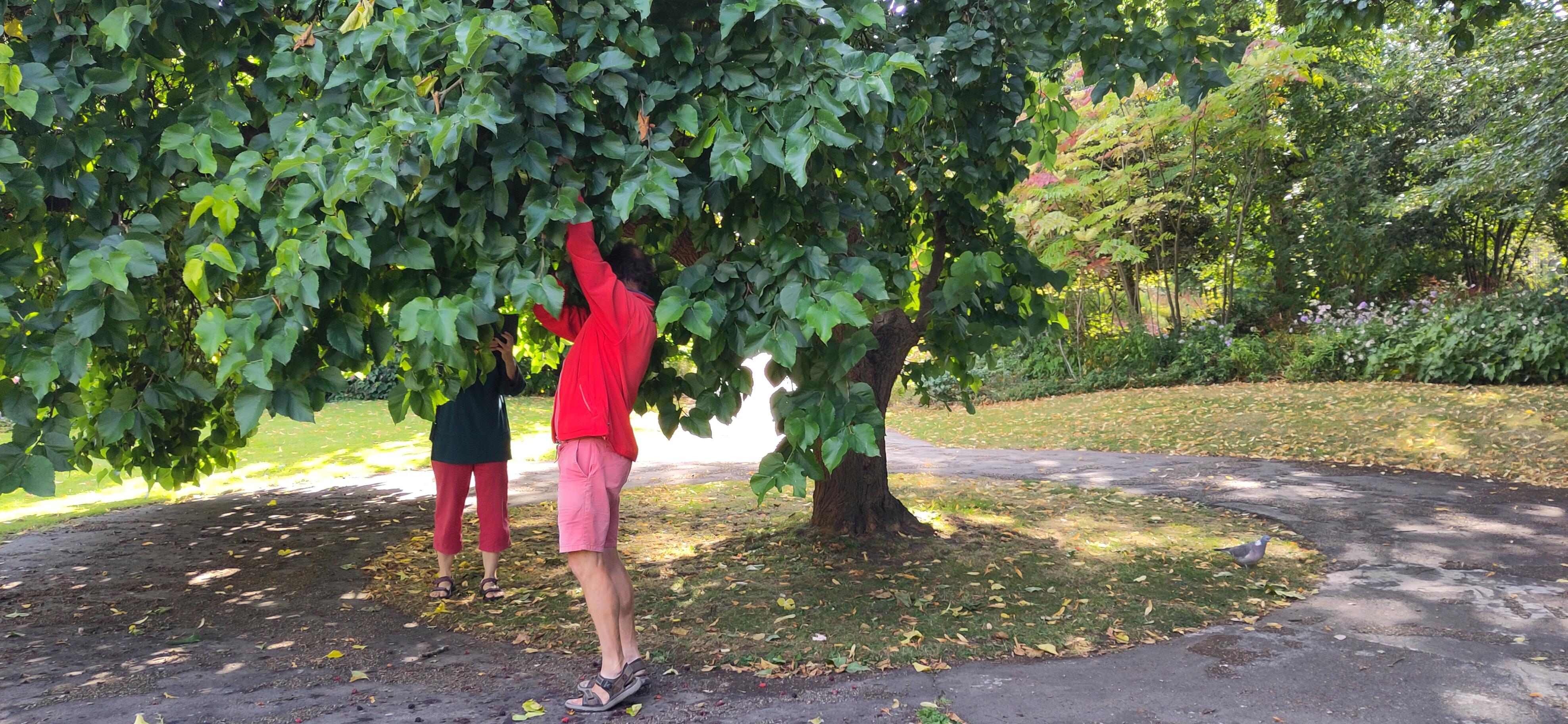 Pretty as the gardens are, it was all the better to go round with Heather, not just for her company, but for her knowledge of where the highlights of the gardens might be. Rather than heading to the teashop she showed us where the black mulberry bush was. It had a path around it so visitors did indeed go round the bulberry bush. We hadn’t ever had the pleasure of a mulberry and associated it only with the childhood action song. The mulberries were a bit hard to reach and clearly others knew they were ripening. Shane lifted me up so I could reach some. They were tasty indeed, and we enjoyed the novel experience which would not be available on a cold and frosty morning but on a sunny afternoon it was fun. Shane had amused us all on the first day in Sheffield with his involuntary facial expression on eating Heather’s tart plums, but it didn’t stop him eating more. His first underripe mulberry brought a similar contortion of the features but once we focussed on the darker fruits, his facial muscles were relaxed.