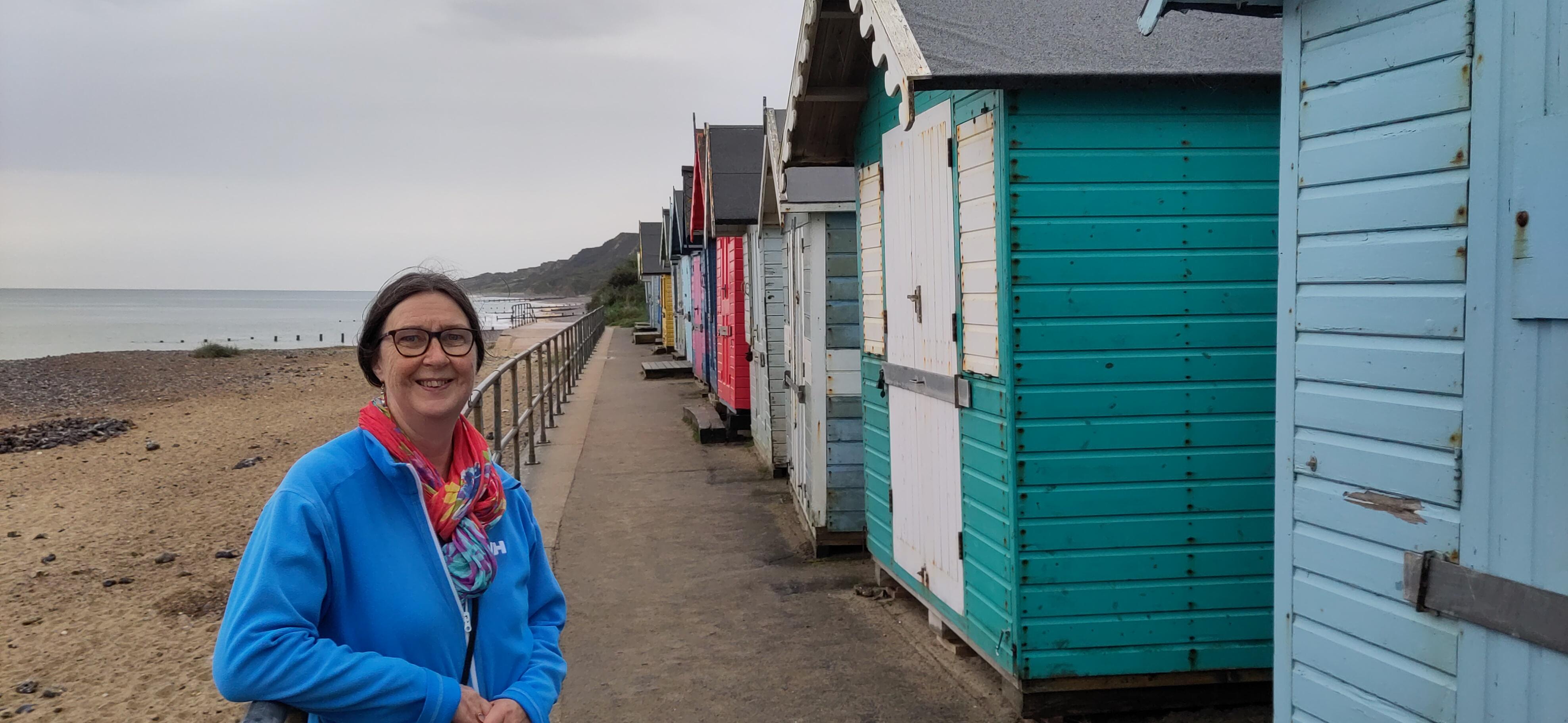 The rain had abated when we left the church, so to complete the Cromer experience I fancied a walk along the beach to get closer to the beach huts. Shane, David and Nye had headed back but Bryn and I enjoyed the multicoloured flint shingle, finding many “witch stones” with holes worn through the centre, and took one back to Nye. The beach huts were even more multicoloured. At the end was a Banksy of crabs without a home, feeling slightly guilty that locals are priced out of housing by the holiday accommodation market.