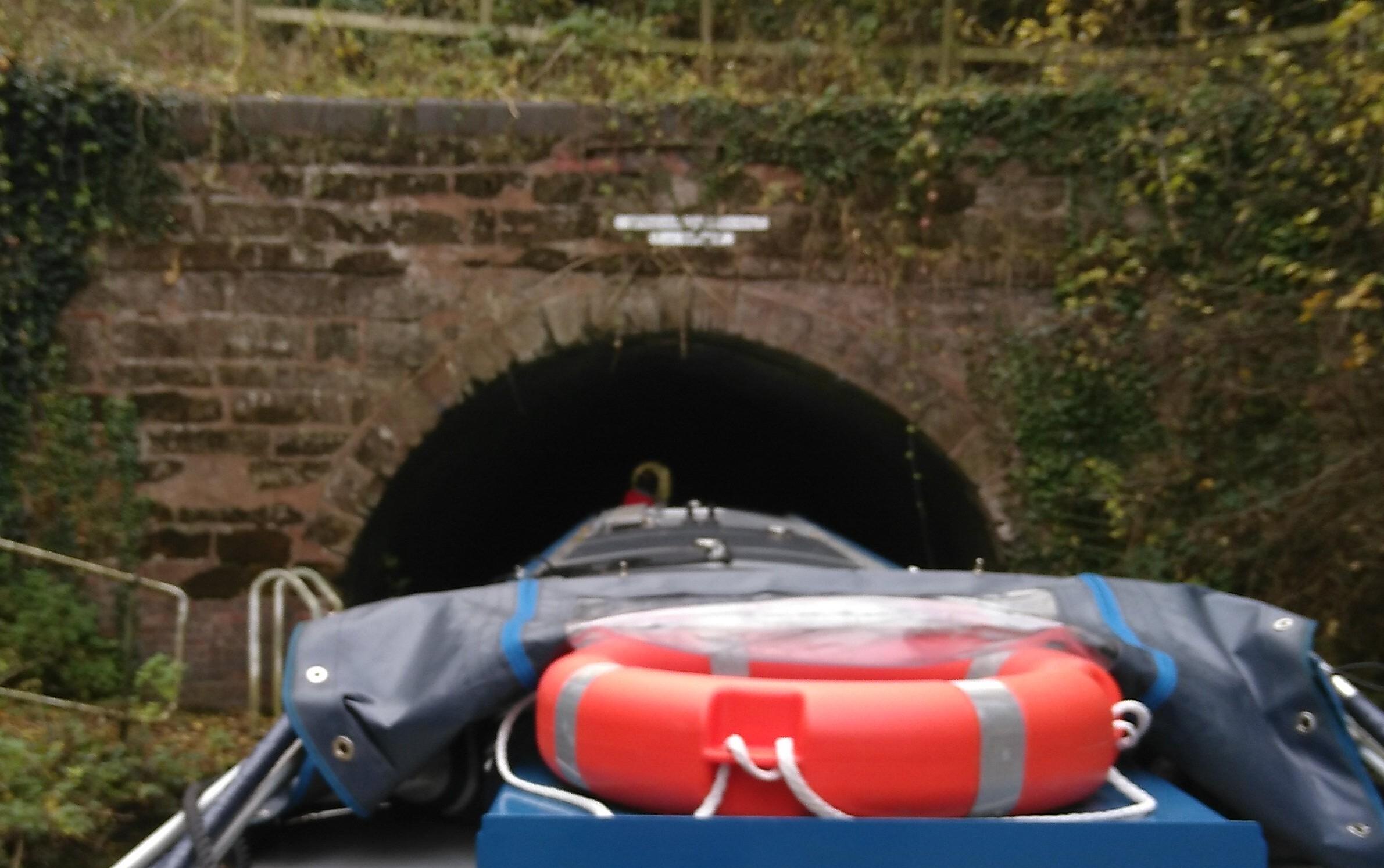 We had a short tunnel ahead and had discussed before that going through a tunnel without a light was an issue but, since the tandem has a powerful headlight, that could be made to work. I decided that holding the frame, taking a photo and spinning the wheel all sounded a bit of a challenge so I volunteered to drive through the tunnel. Shane had a trial run of setting it all up, then as I was lining up to go in I thought I would like a shot of the approach. Luckily the entrance was quite a wide target. I could see all the way through easily, but that is less obvious in the photo.