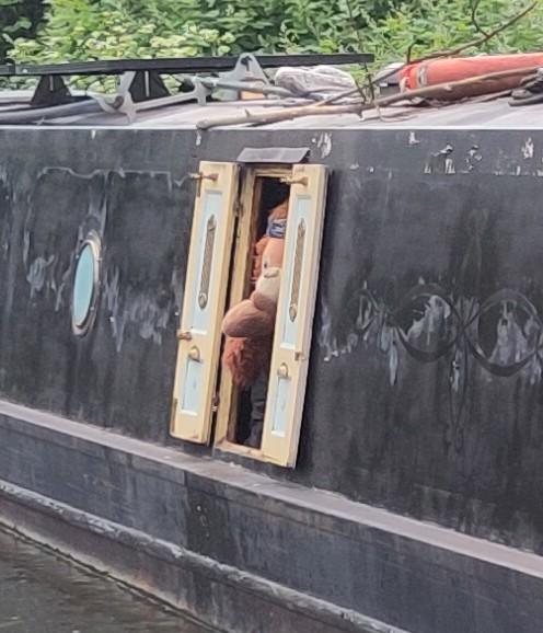 I saw a boat arriving to work the lock and thought it would be nice to help them through since we were partly on the lock landing. I found a lone boater, who was very pleased to have the offer and said he had brain fog and was finding going down the locks a struggle. I told him to get aboard and I would do it. Of course this was the particularly stiff one to turn and a man who was out cycling with a young lad, I assume his son, had stopped to see the lock in operation. The man saw me finding it hard and offered to help. Since I had done it before I knew I could manage it, but he was very keenly offering so I said if he could if he really wanted a go. I asked the lad if he wanted to do the other side since they seemed to want to be involved and I knew that side was easier. It was good that they hung around, as they were able to open the other gate. Meanwhile another boat had arrived going the same way. So I went to the other end and made the same offer to work it with them and told the lady that the paddle on her side was very stiff but she might get an offer of help, from the bystanders who had stayed at the other end, which she did. Yet another boat arrived, so I did the same operation again. The lad had a go at helping the woman with the stiff one, but couldn't move it so the dad stepped in. They were finding that it is even harder at the start.
