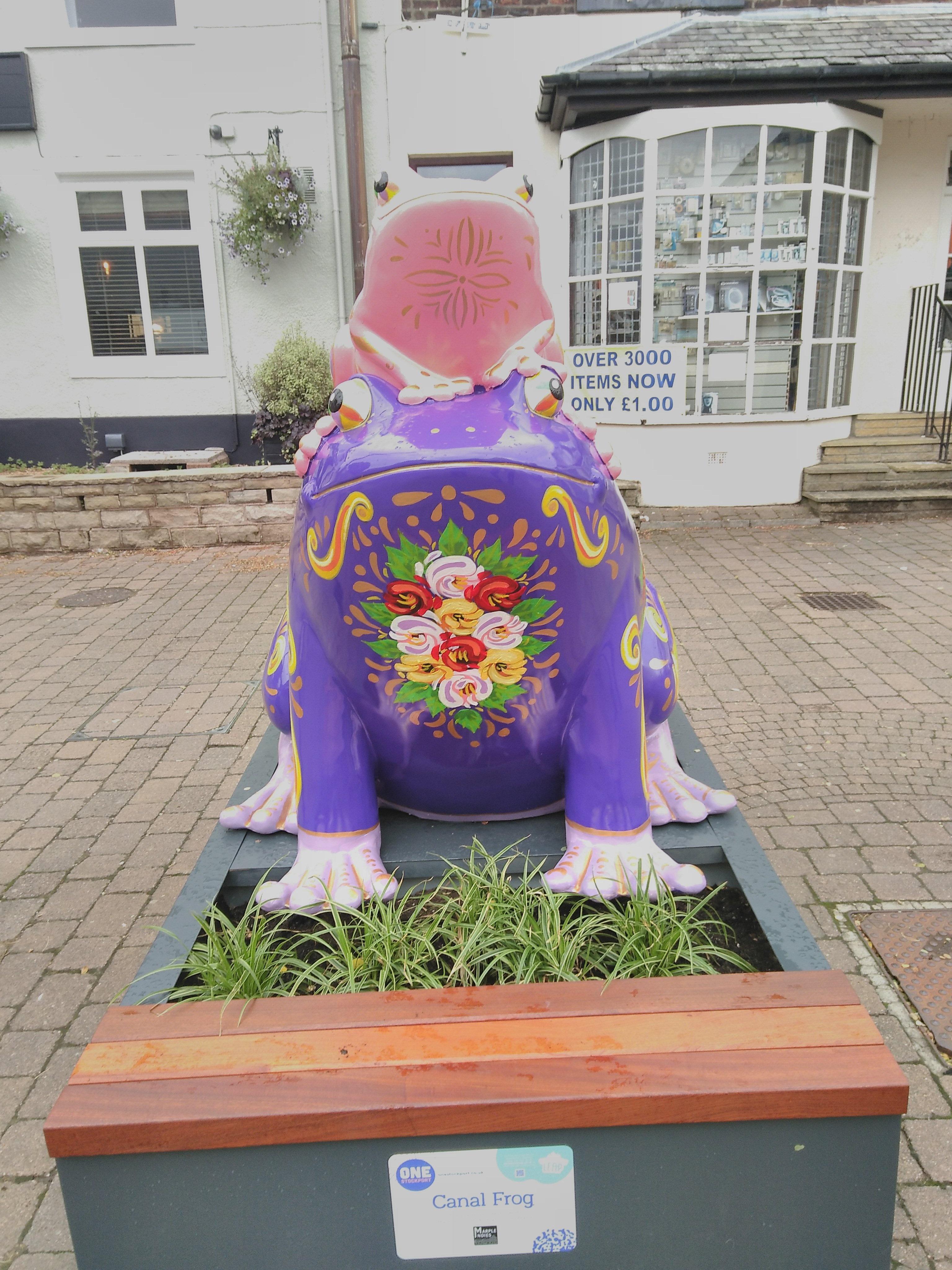 We met up with David who was unfortunately embroiled with an engineer, come to see their boat at Marple marina. David has seen a frog at the marina and later Nye, David and I popped into Marple’s Market Street so they could share the frog frenzy taking over there. This time I got a shot!