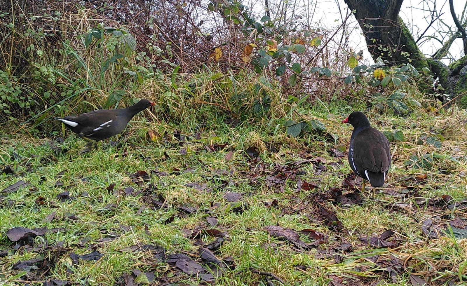 We enjoyed a walk around the pond right beside us. We saw pochards and a gold finch and some pigeons seem to come in close to Shane’s head a couple of times. The usual array of water birds were there, swans, geese, mallards, coots and moorhens. I am fond of the moorhens but they are often shy and swim off. They rarely come for feeding. Today though there were a few tamer ones, but even then they were in retreat.