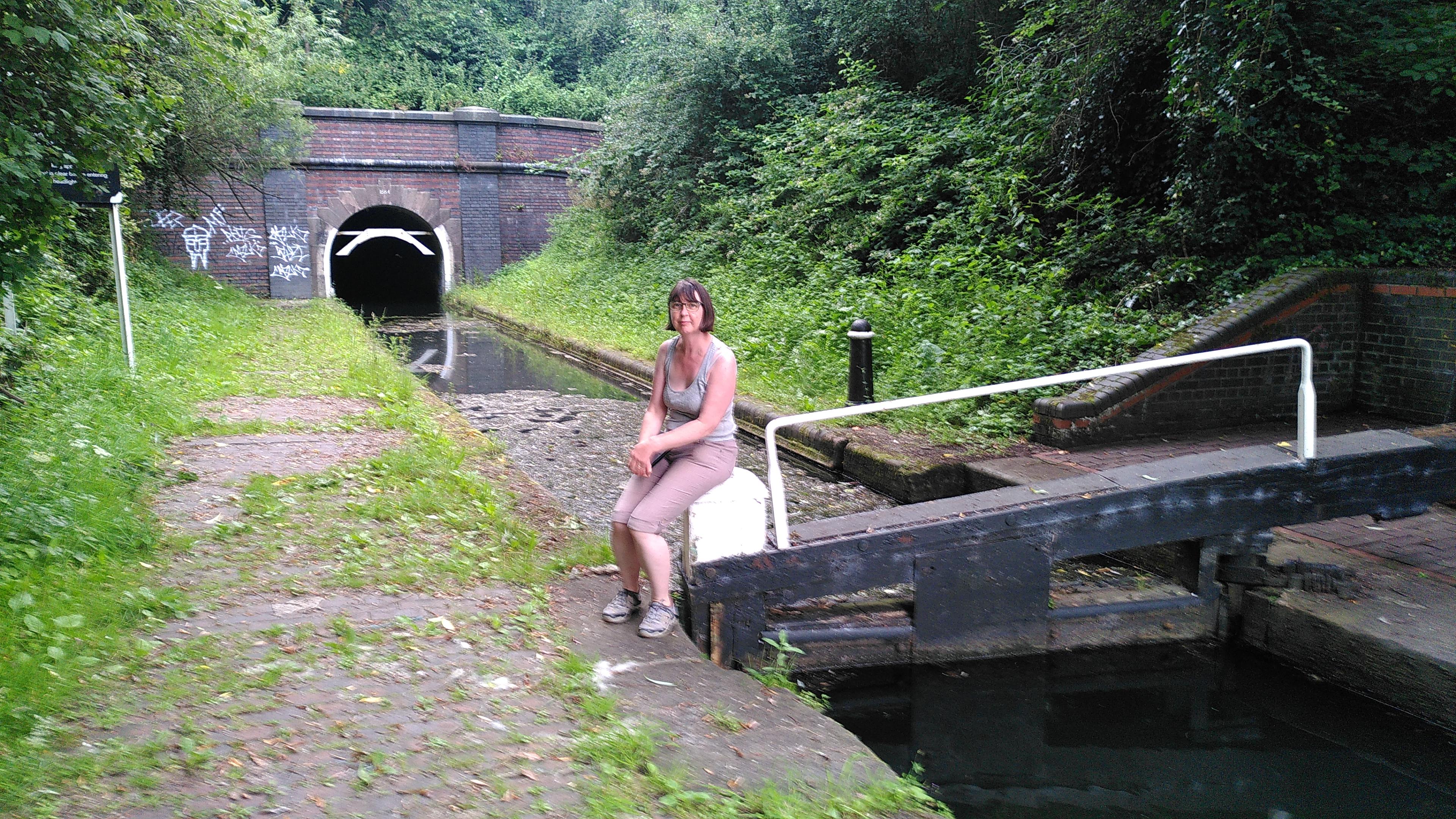We returned to the main drag, and had some lunch. With the cooler weather, we were enthused to press on up the Delph flight of 8 locks, and then on to another Silver Propellor location – this time the Southern Portal of Dudley Tunnel. The silting in the top pound was so great that we couldn’t get within line of sight of the tunnel. We managed to get to the bank a little further back to see the portal. We don’t fit through that profile!
