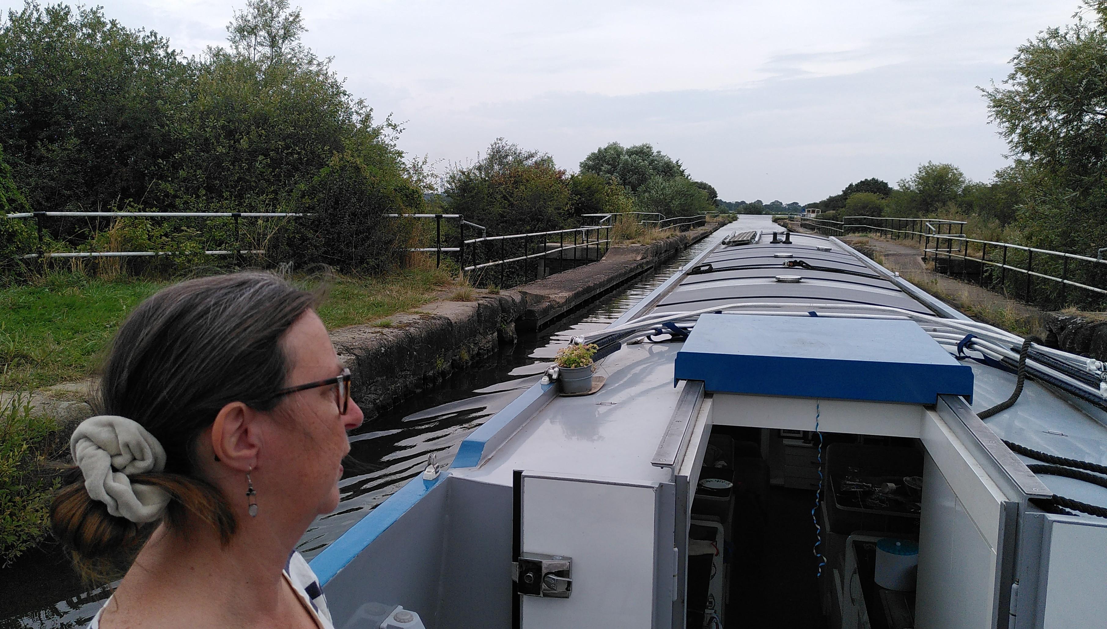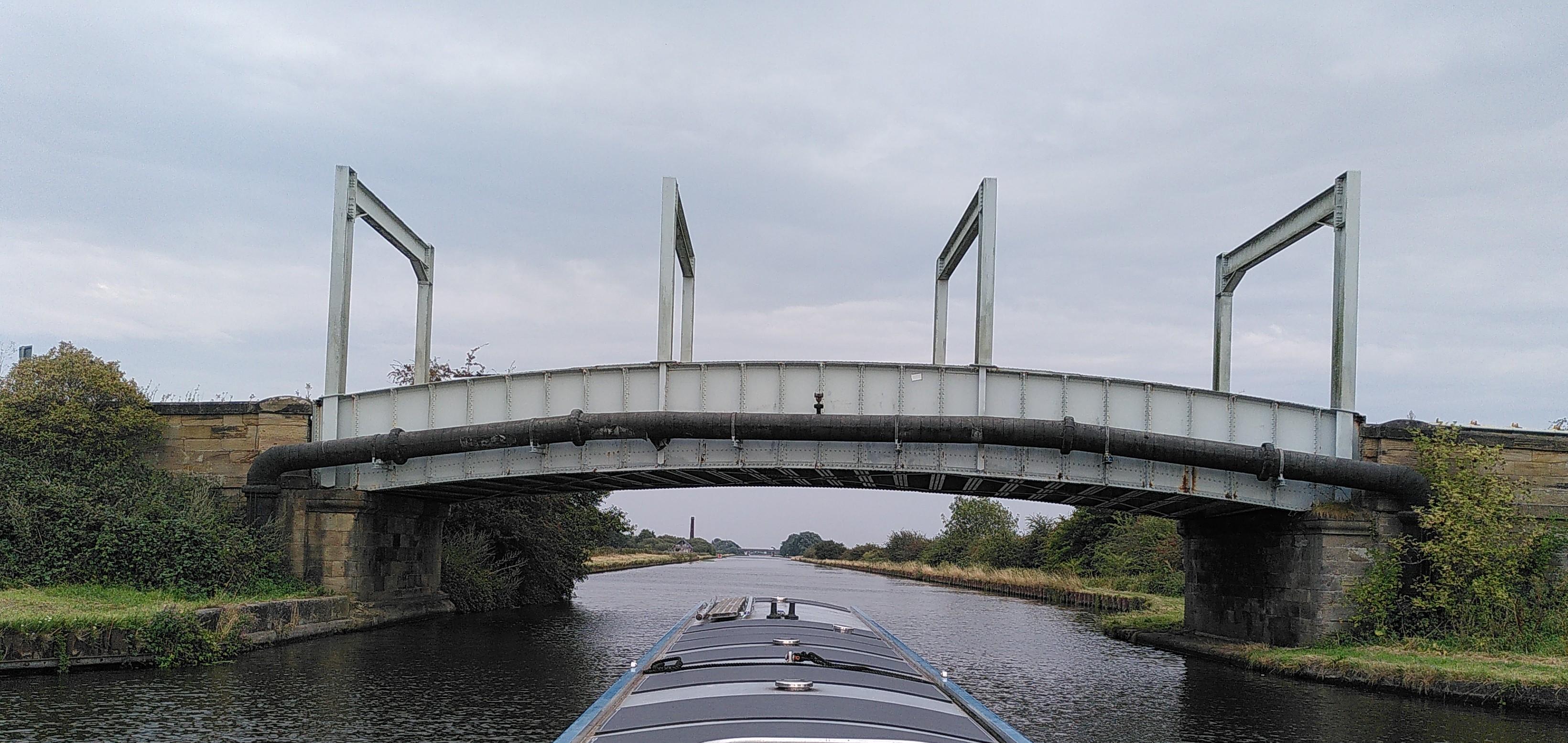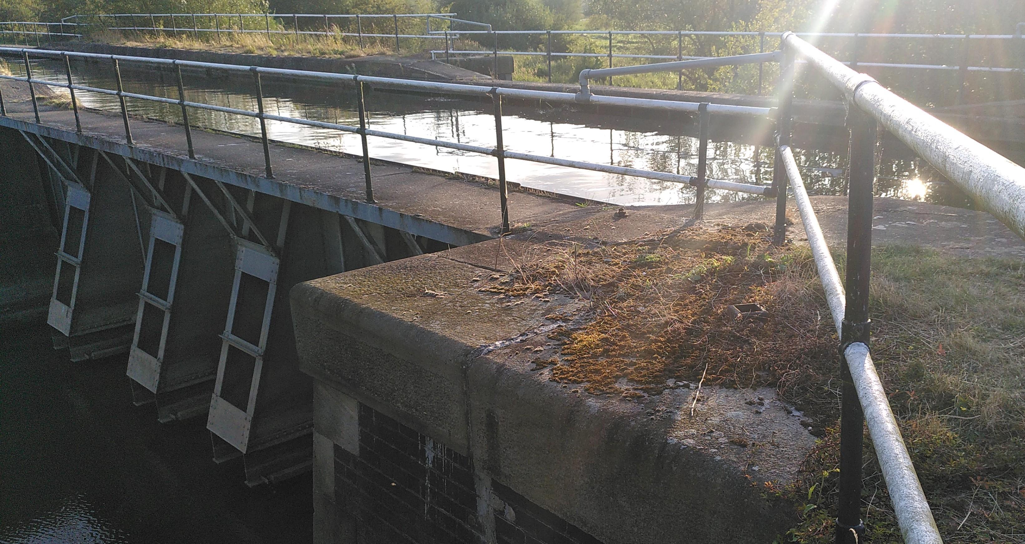 After lunch we set off towards the lock. I’d seen the red and green lights earlier in the day, but now the amber light was showing, so I got off for the self-service operation. This lock was different to any we’d seen so far. It had the usual buttons on pedestals at each end, but nowhere for a key. I eventually read enough of the instructions to realise that my key went in the controls for the bridge in the middle of the lock. With the key turned, I could close both road barriers which then released the swing bridge. Once I had swung the bridge the lock controls would work.
