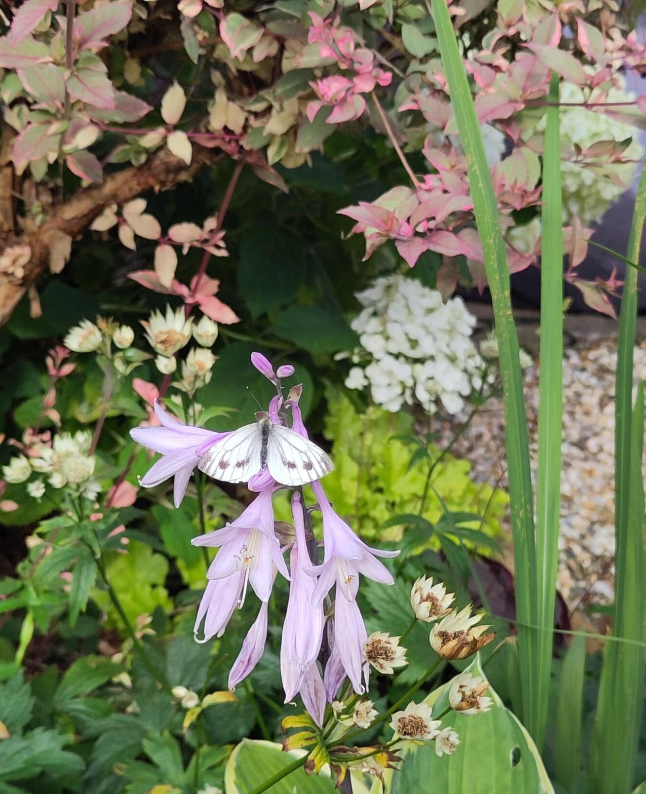 However, as I sat on the bus, heading west, the sun receded - it was cloudy on her side of town. Still it wasn't cold, balmy even, as we climbed a hill and we saw a peacock butterfly, near the top. I had strawberries, raspberries and cream to dish into bowls on top of the hill, in stead of coffee in a flask. The cream had been pouring consistency when I left the house but a bit of jiggling had thickened it by the time we got there. We reminisced about the fruit in the garden and accompanying cream substitutes. I remembered having them with evaporated milk, as cream was only delivered one day a week, on Saturday, to allow a Sunday luxury - often our baked puddings were served with milk, and there was no baking on Sunday anyway!