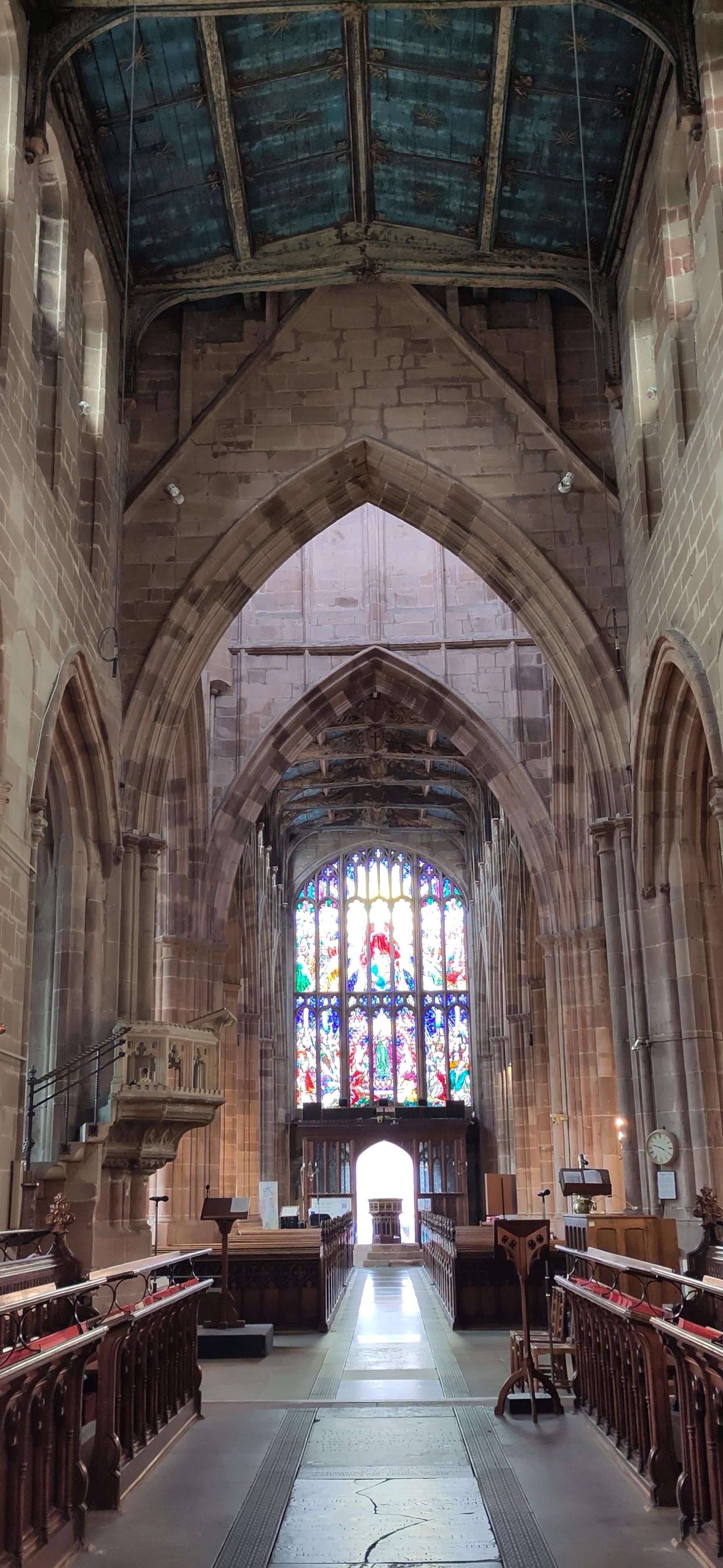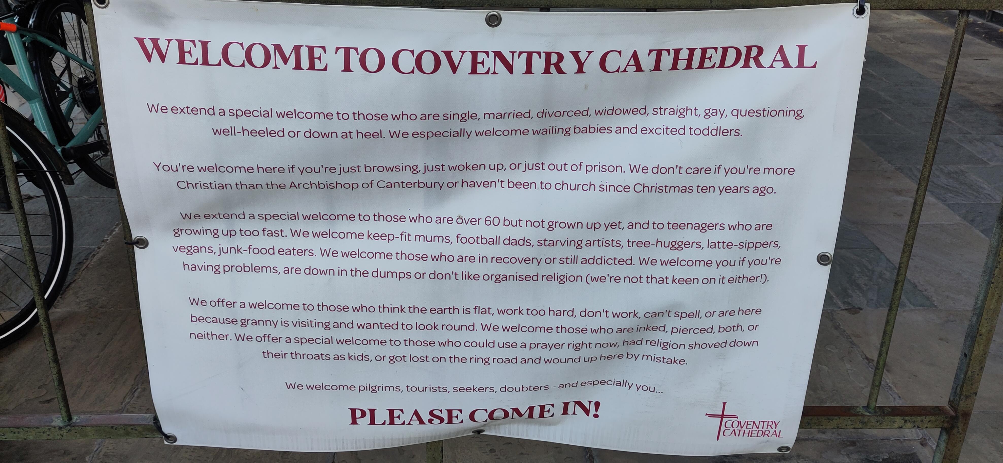 The next day we were planning to complete our trinity of Coventry cathedrals and visit the most up-to-date one. I felt it was very modern but as my friend had told me she had visited it in the 1970s I had to revise my definition of modern, and realised Nye's would be different again. I found it writ large on the floor that the cathedral was older than me, and as I had got into the museum as an OAP the day before, perhaps it was not so modern, but still as church buildings go it was pretty recent.