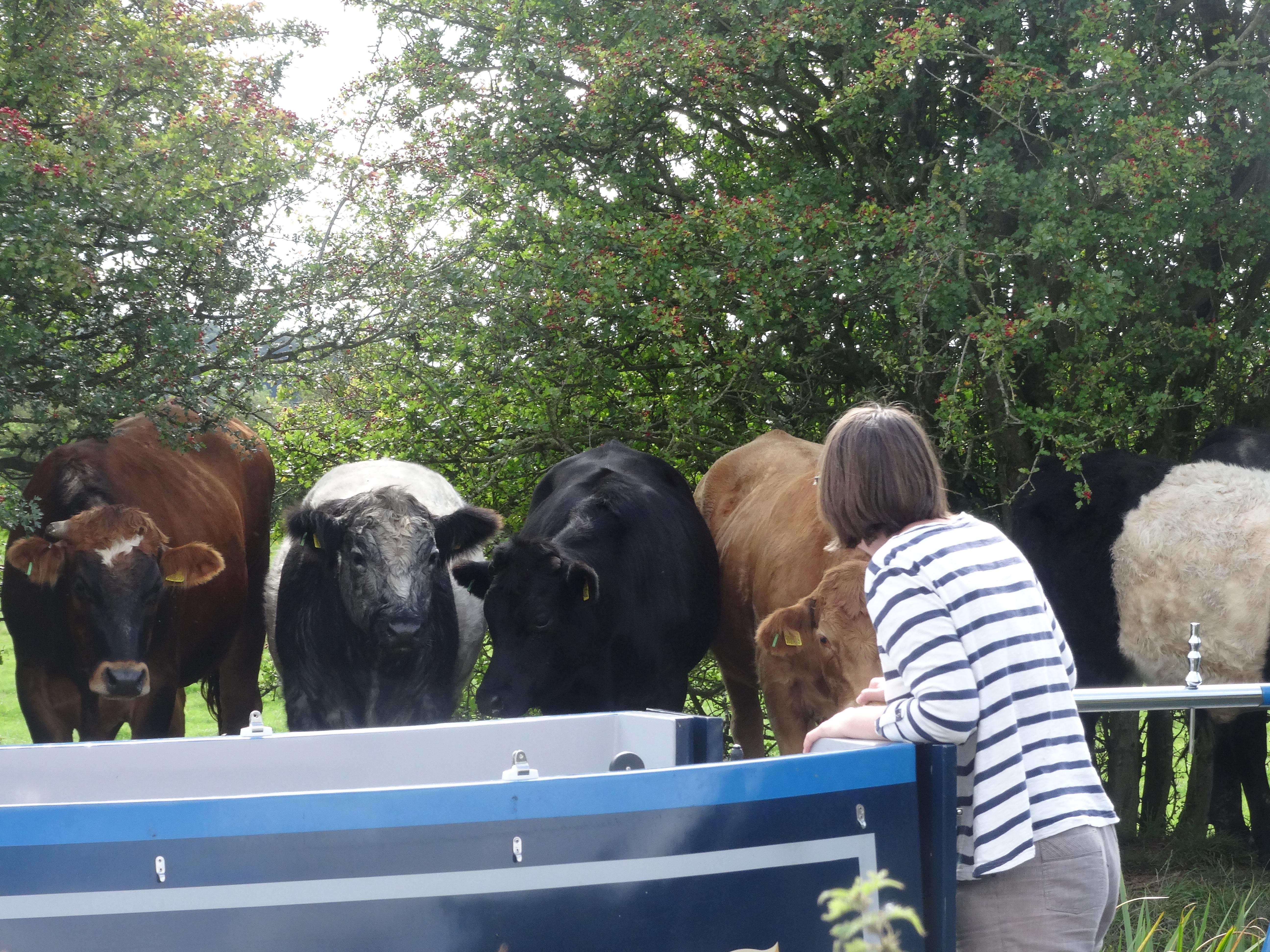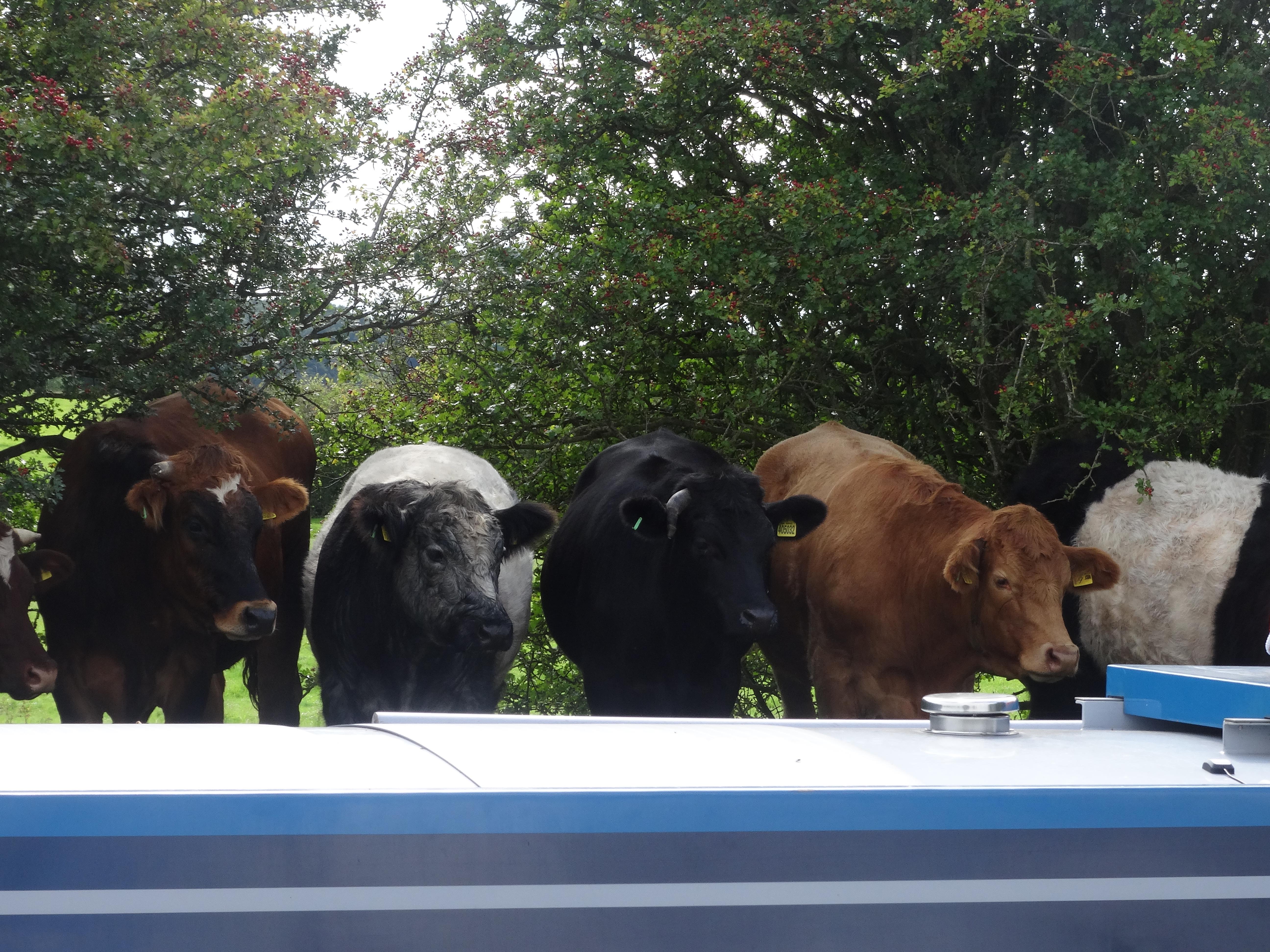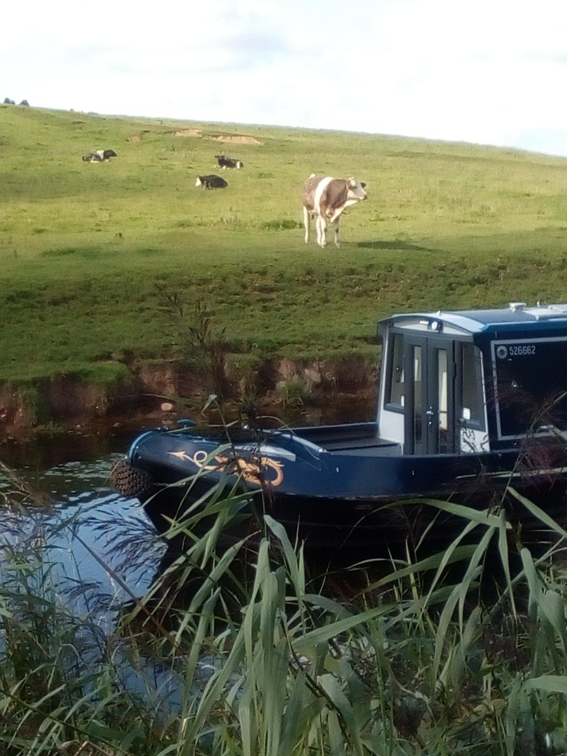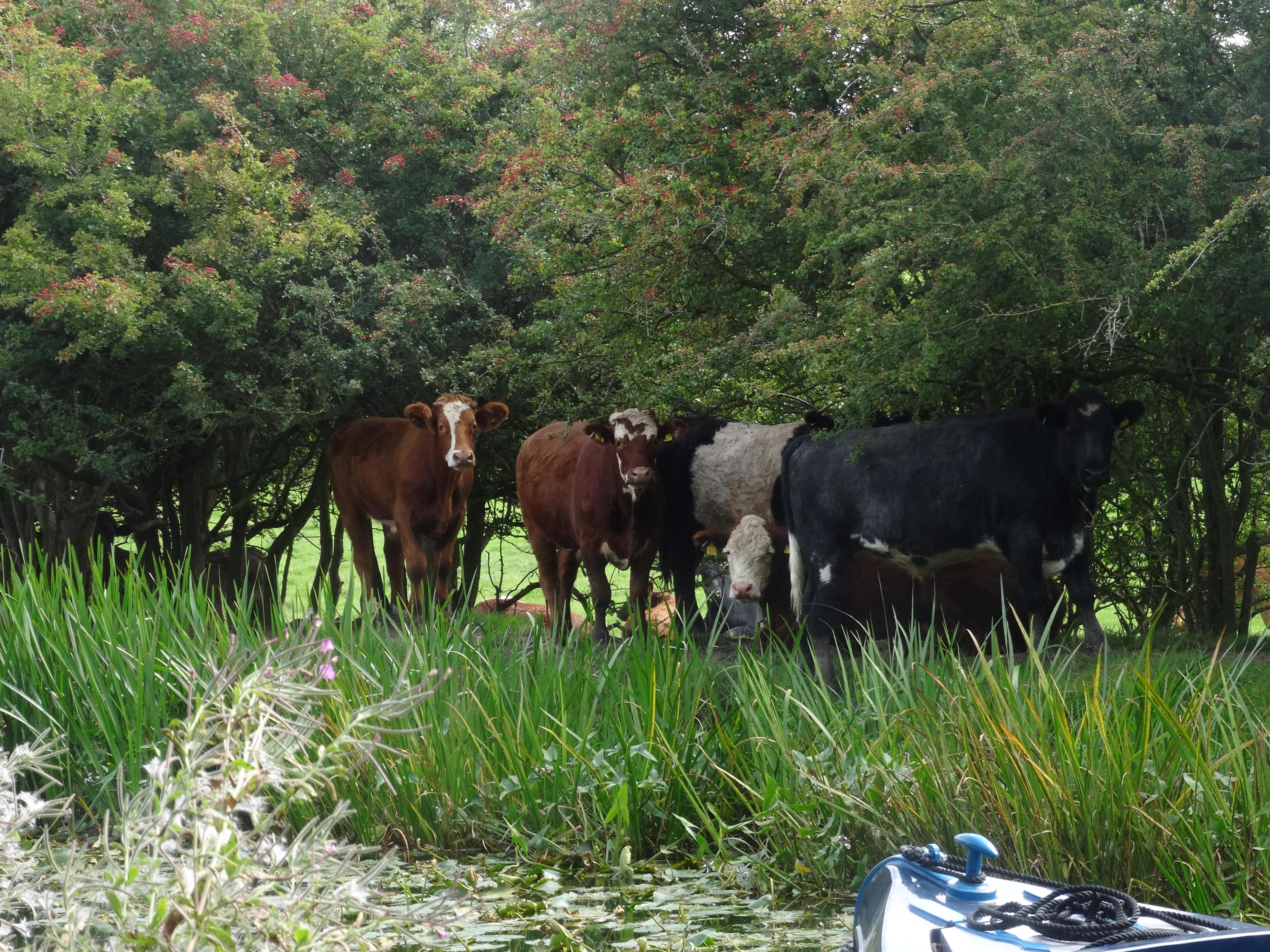As you can see, the channel is narrow and shallow (and weedy). The cow seems to find Clare very interesting, but look at this: