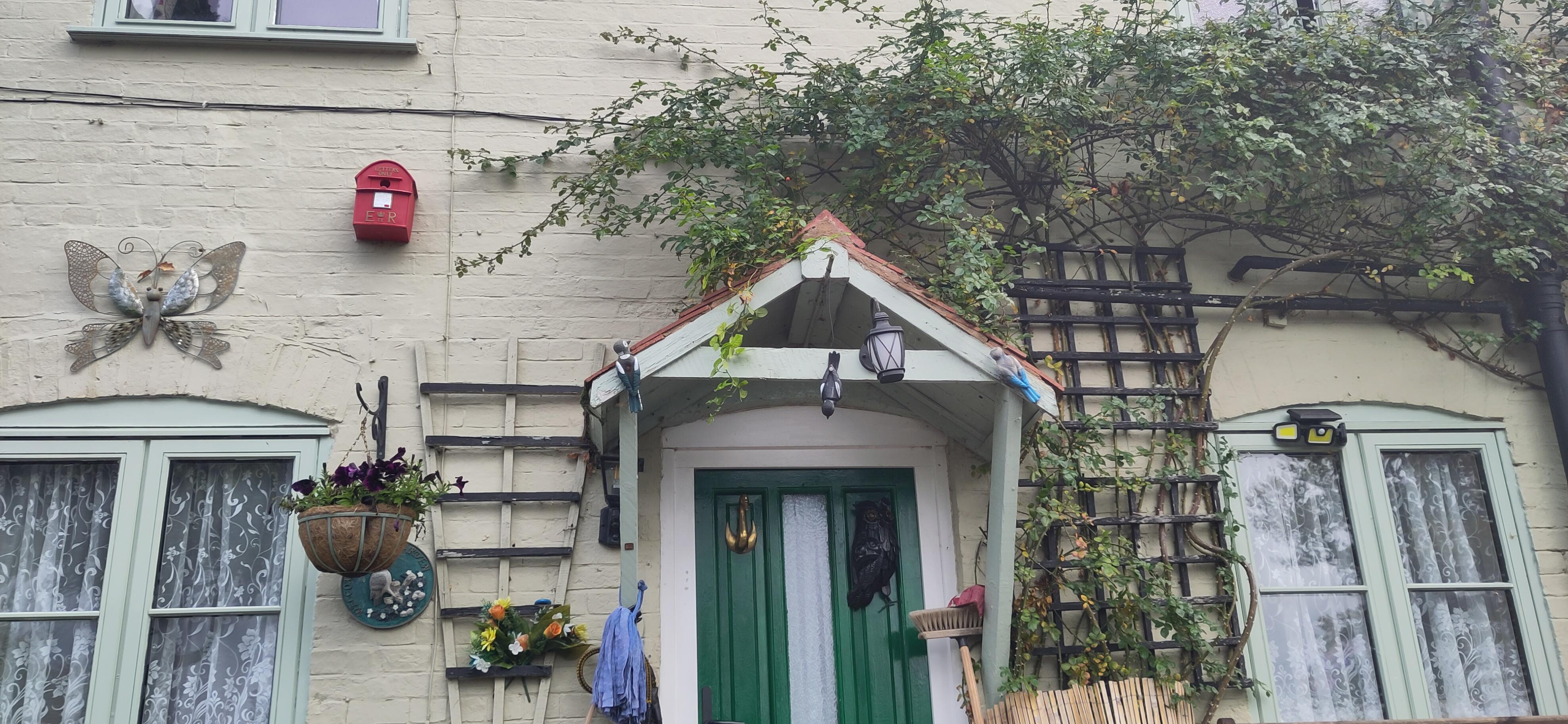But then the sun went in. Even so, a fisherman I passed greeted me warmly, saying what a nice day it was to be out. I managed to reach in and get my coat on as it cooled down rapidly, if standing still. I was well distracted at the gnome garden lock, looking at the flowers, ornaments and post box shaped birdhouse on the cottage. Plus a mop, broom and cloth. Spotless in and out I am guessing.