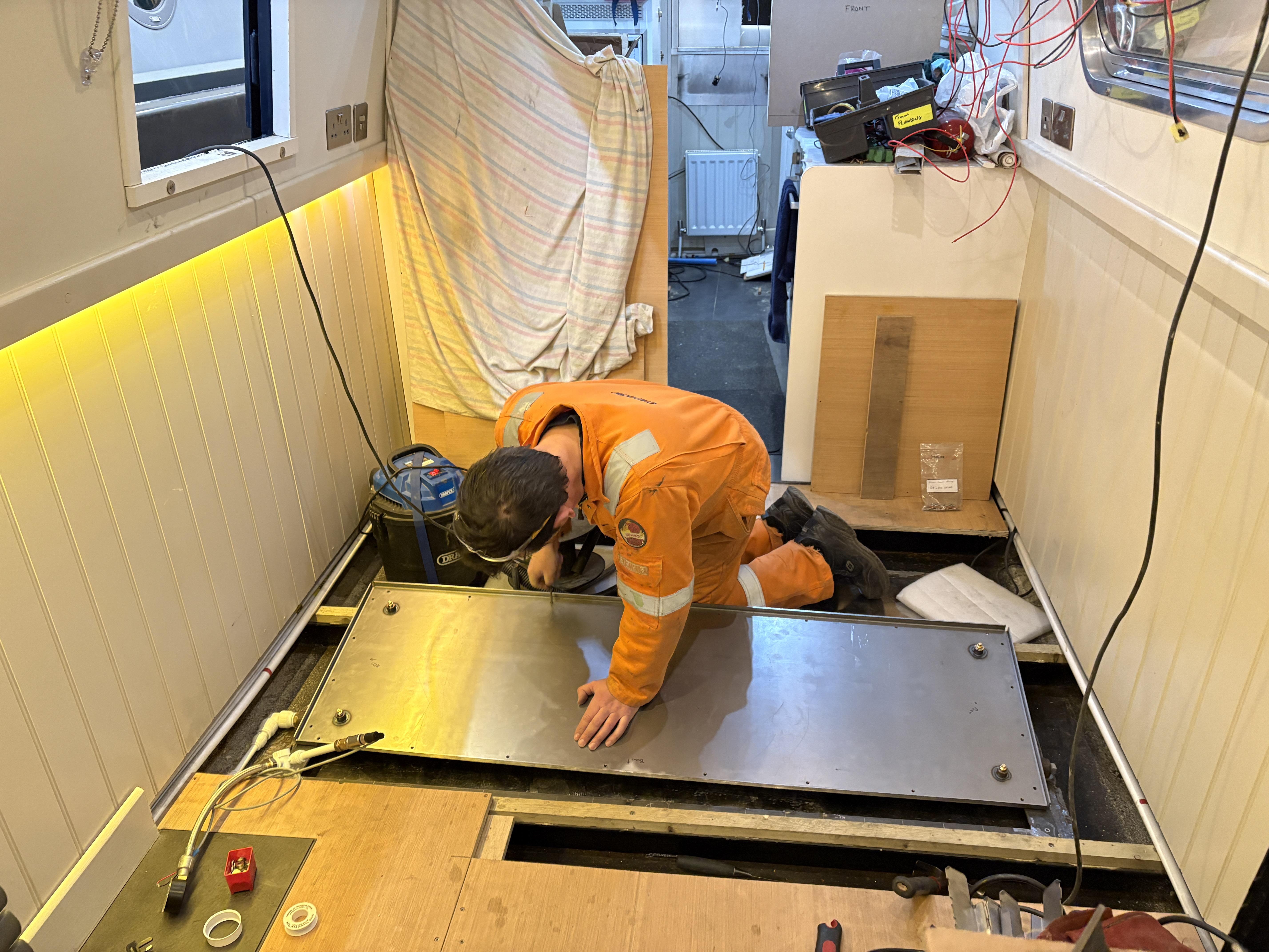 Work on Bartimaeus has been progressing. The new skin tank under the cabin floor took more work than originally expected, but now seems to be complete, or very nearly so. We've seen pictures of work in progress, and been party to exchanges of emails, but we've been leaving the experts to get on with it.