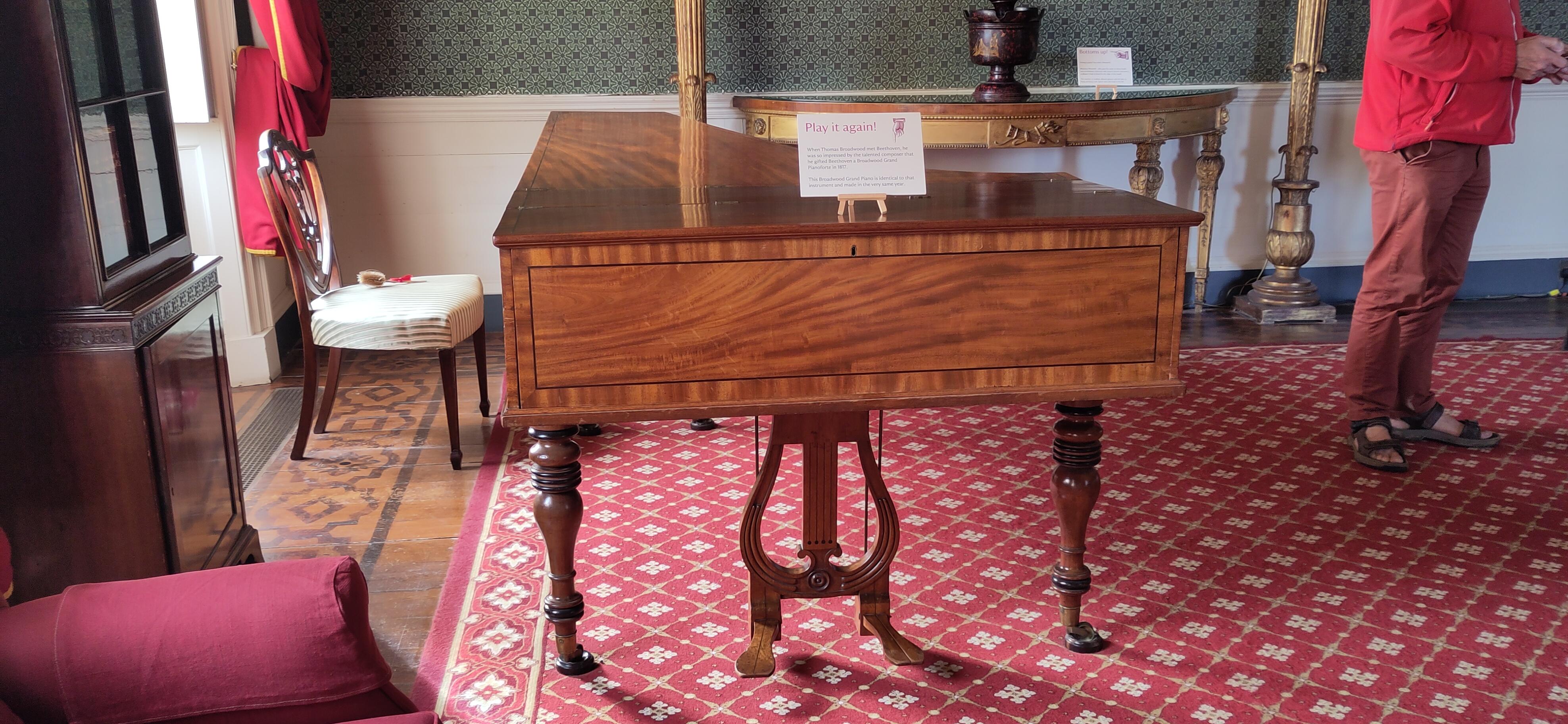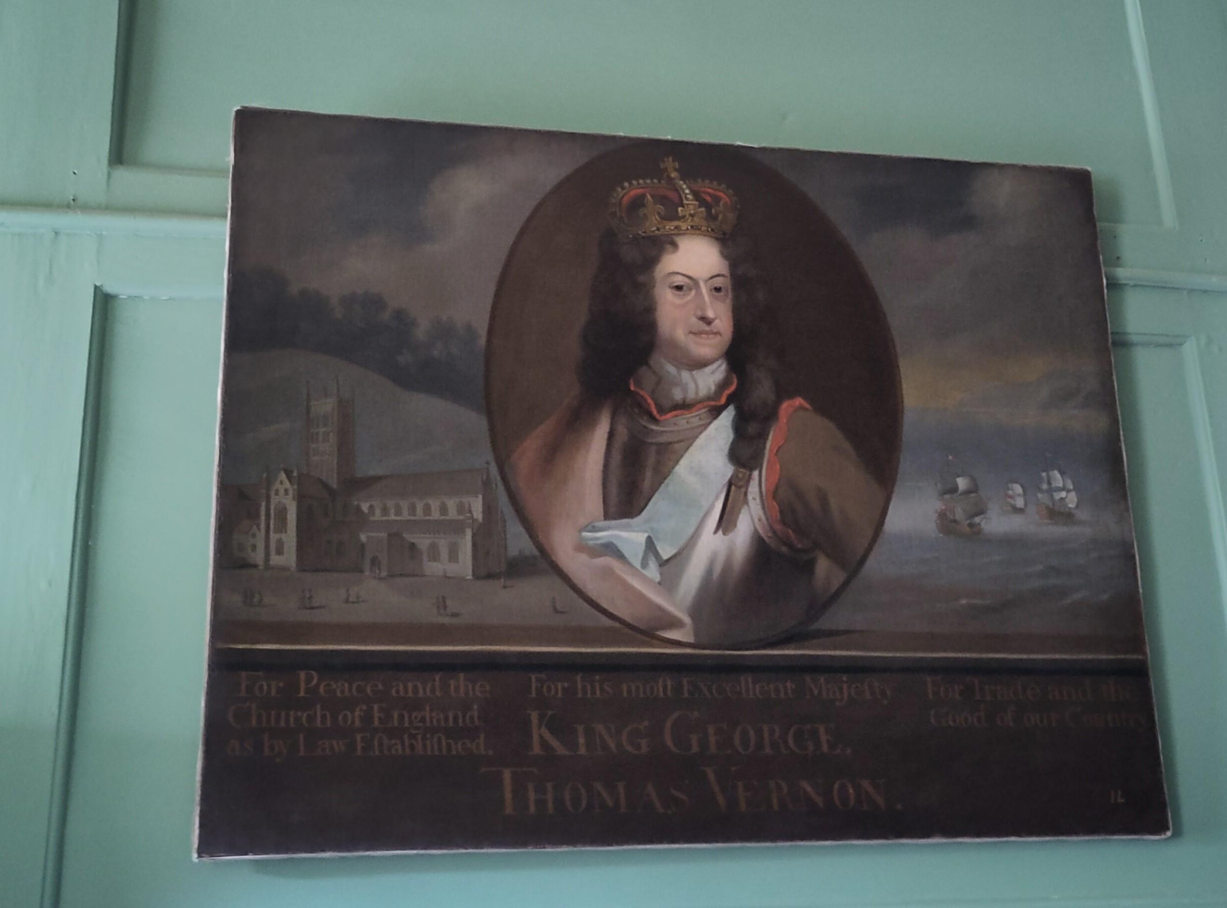 We had completed the downstairs rooms and could now go up the stairs to admire the main feature. As well as the greek myth explanations on the noticeboards, on Achilles, Odysseus and Ajax, a volunteer drew our attention to an addition to the painting that was not on the original plans, a picture of a minister who vehemently opposed the Whigs and said so in one of his sermons. He is depicted being passed by Mercury, to the furies. Vernon so disliked him, he must have requested this addition.