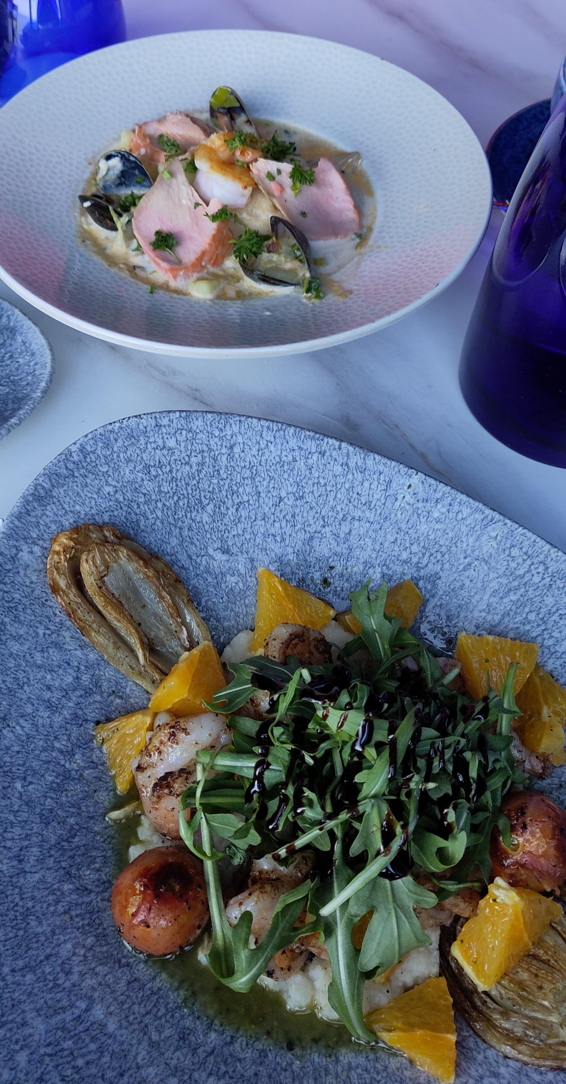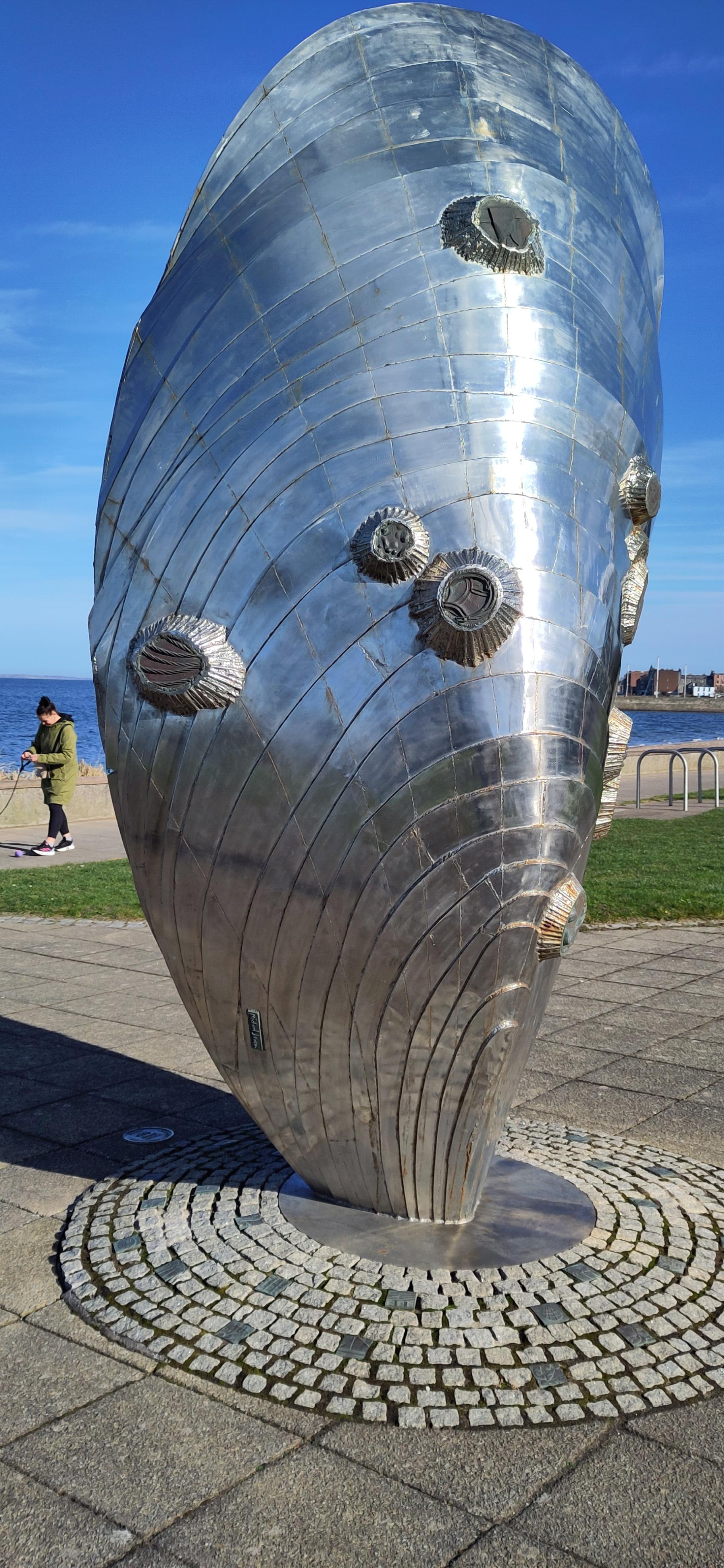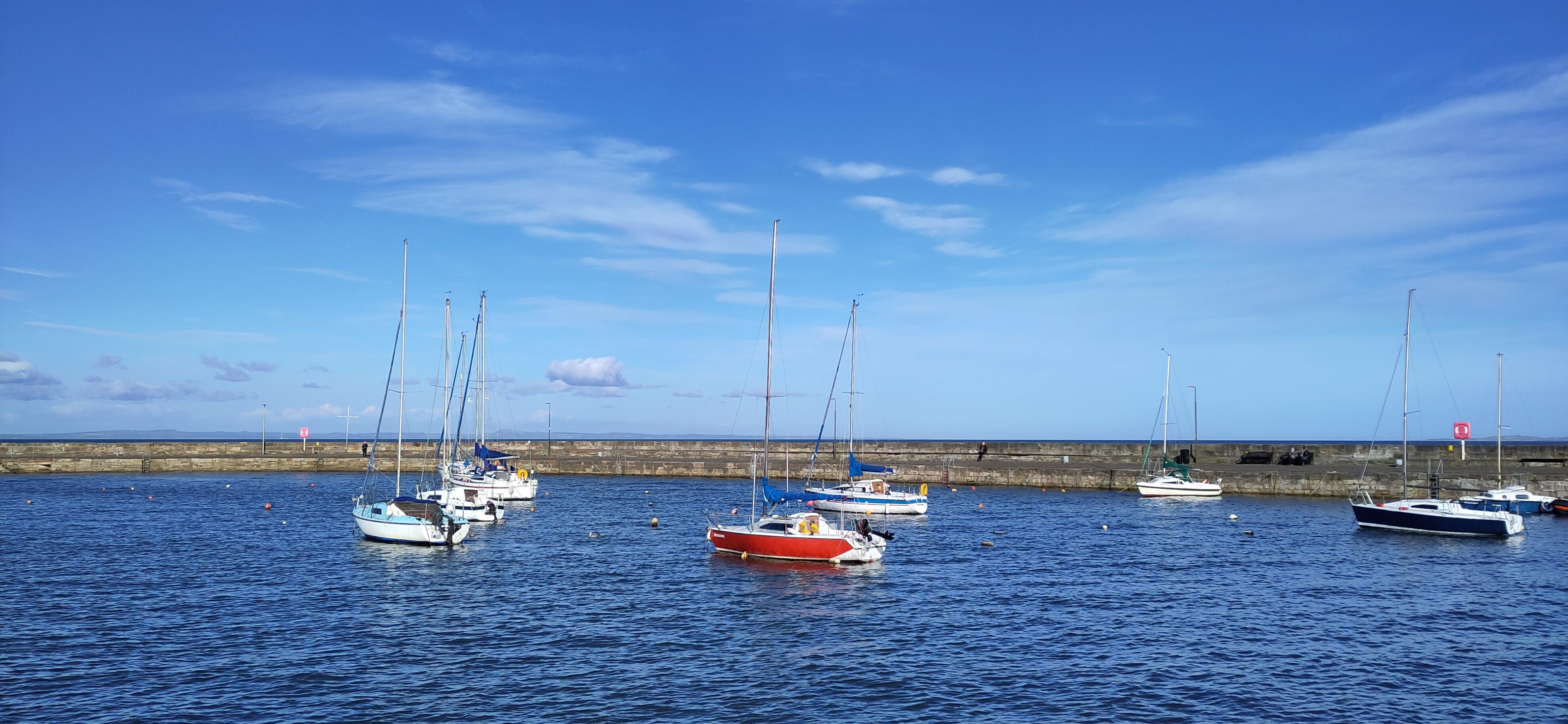 Just as I had seized the carp, as Shane says, (carpe diem) by getting a lift to Dr Neil’s Garden when it was sunny, Shane had found a blue sky day and decided to use the bus passes for a coastal walk. Shane had been told that a place at the far end of Portobello prom that looked like a smart restaurant was still okay for a coffee stop too. So turning away from the cluster of eateries,we headed along to the end of the prom, where he believed it was. It was a hazy memory and he couldn’t remember who had recommended the place. Just as we approached Shane remembered it was a fish/seafood restaurant, appropriate for its setting.