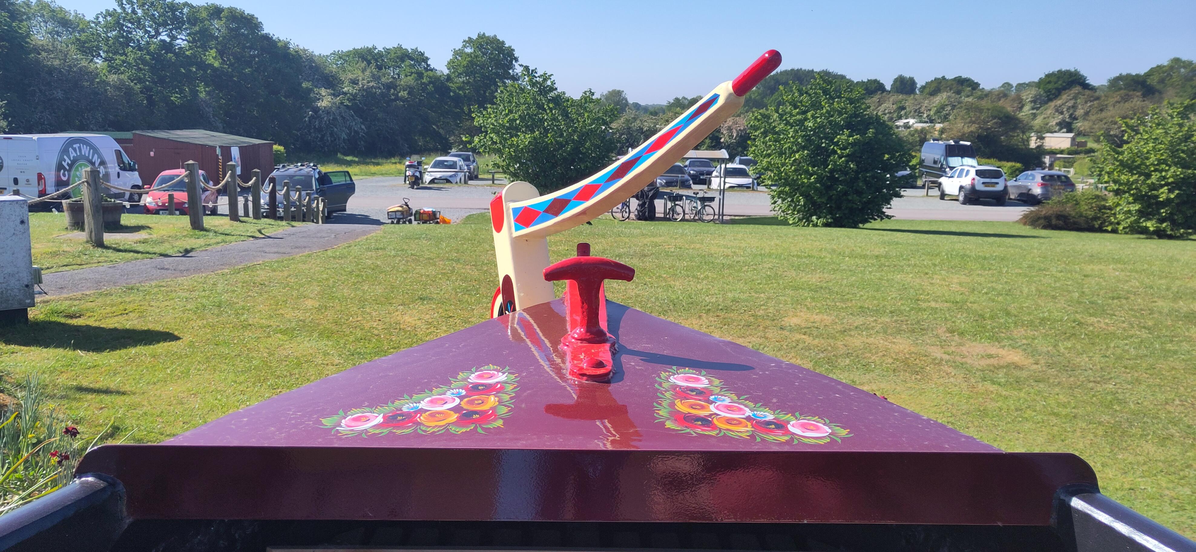 Before leaving the boat, we had seen a conversation on our Ortomarine channel about a fellow Ortomarine boater who wanted advice and help moving her boat, as her husband had broken his leg. We were quite near but not close enough to help that day and about to go to Edinburgh. Fortunately the Ortomarine family came up trumps with a recommendation of a professional boat mover and the boat was moved to a marina where another Ortomarine couple were based. They were able to organise space in the marina, offer practical support and extend the hand of friendship. We guessed our help would not be needed but we were now moored just outside the marina and so we offered to meet up. Jan's husband was scheduled to have an operation and I know it can be useful to have a diversion when you're waiting for someone to emerge from theatre. Jan replied to say she could meet at 9.30 at the marina cafe. We had never met each other before so I informed her I didn't look like my profile picture but sent a picture of Shane in red t-shirt and shorts and said he looked like this, confident he would not be wearing anything too dissimilar the next day.