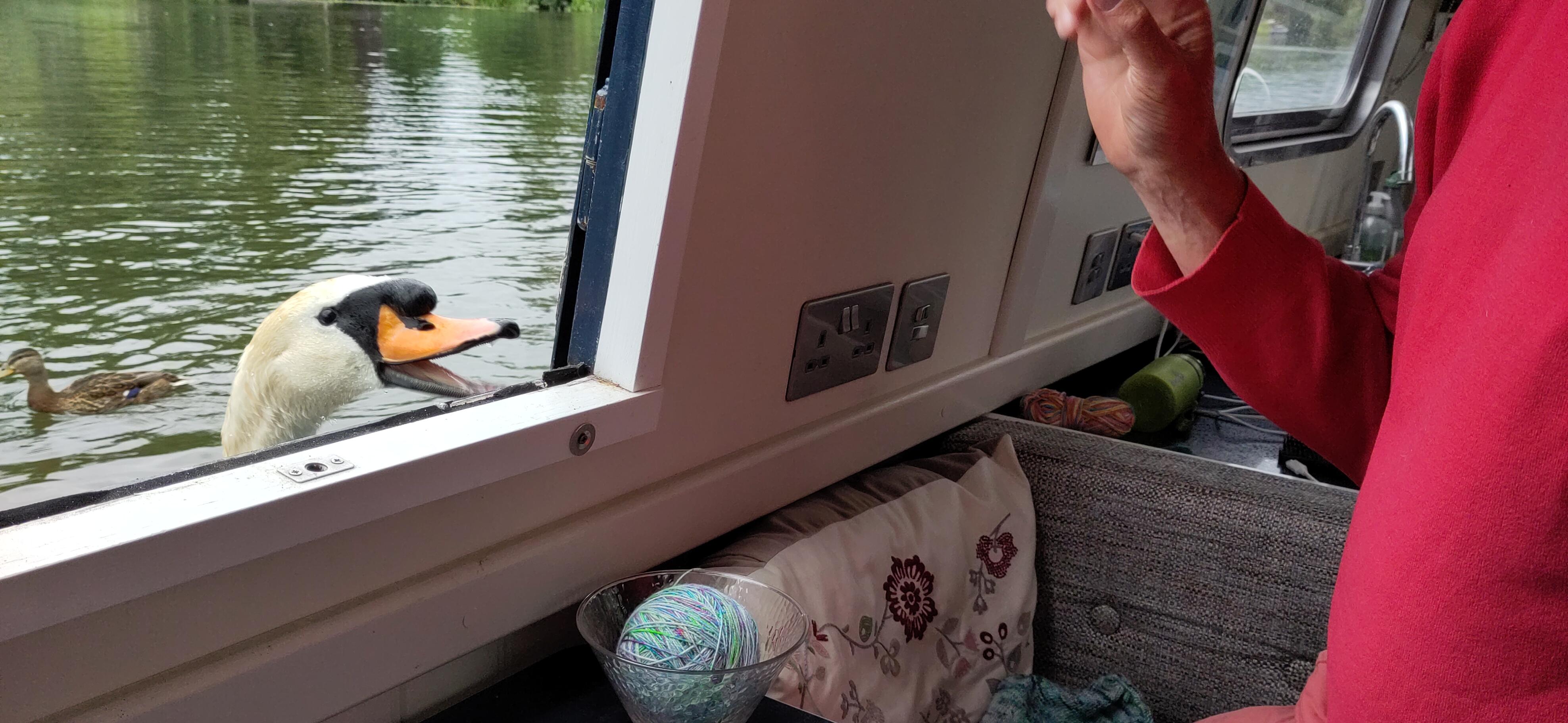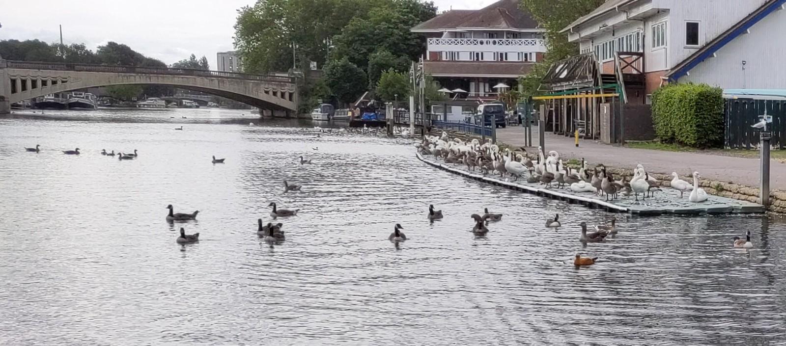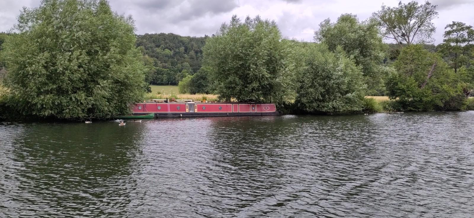 We made good time. Mooring was still surprisingly tight before lunch time,but we were happily moored up and I went to the shops while Shane waited for our inspector, who lives in Purley himself, but also had a boat, just a few metres away. He approved of the electrics, suggested a different carbon monoxide monitor, advised in ventilation and labelling for fire extinguishers. He approved of my visit to the pie shop. He and Shane bonded over batteries and melanomas and he showed us his app for measuring safe levels of sun exposure in current weather conditions according to skin type and showed of the scar in his leg. I got a bit pink in a vest style top yesterday so I would not have passed his safety inspection. Mind you he had kitchen paper wrapped arond a cut on his hand from his washing up, a hazardous task. Thankfully it was on his boat not ours.