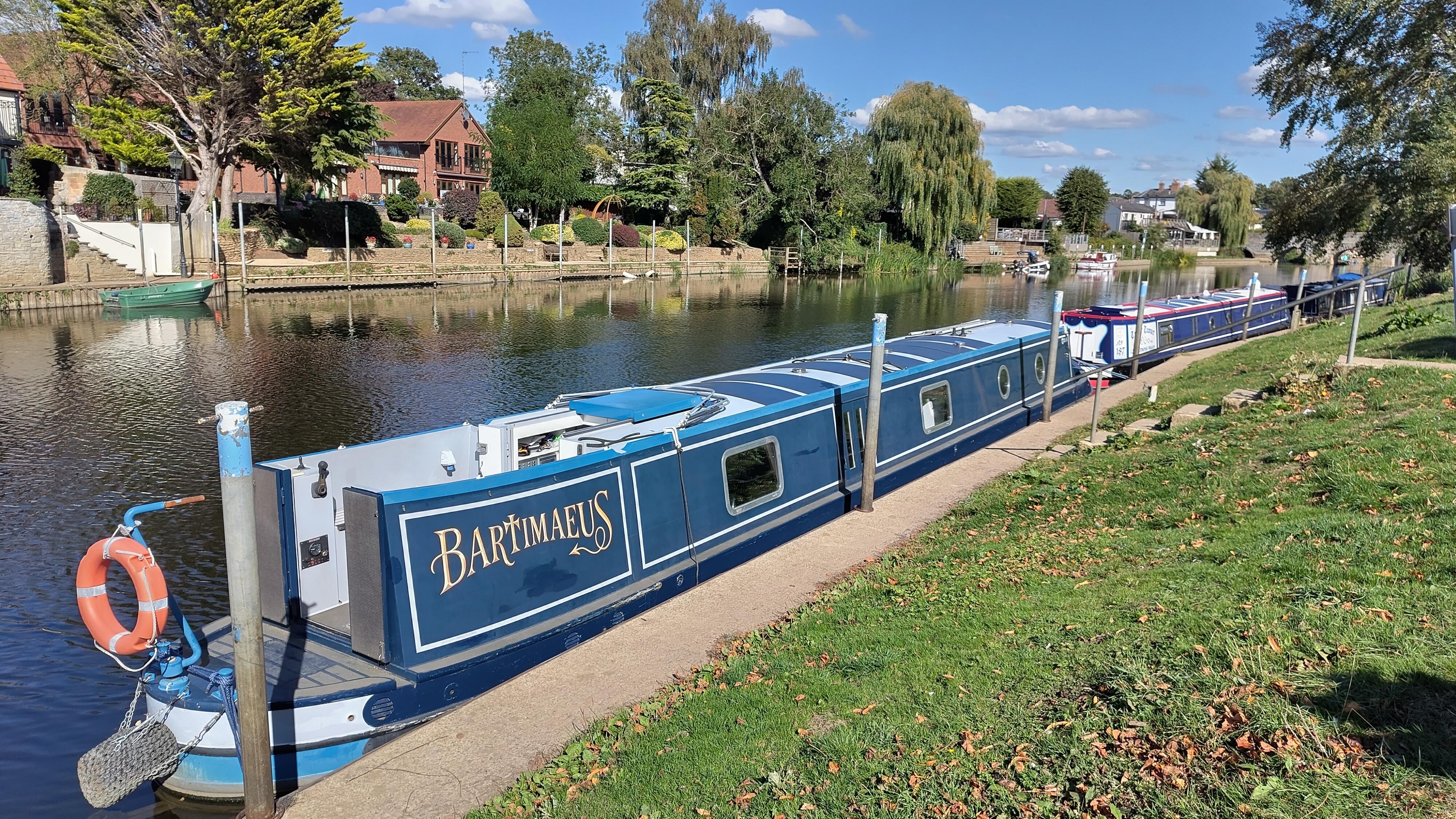 The battery wasn't quite fully charged as we reached the mooring, so I carried on downstream, partly to continue charging and partly to explore the options for winding. I winded in a wide straight section without getting as far as Marlcliff Corner - the guide suggests the section after the corner might be narrower with a shallow edge on one side. As we returned to the mooring, the battery's state of charge jumped to 100% - perfect. We've been doing short distances each day, so this was the first time in over a week we'd got the batteries properly full.