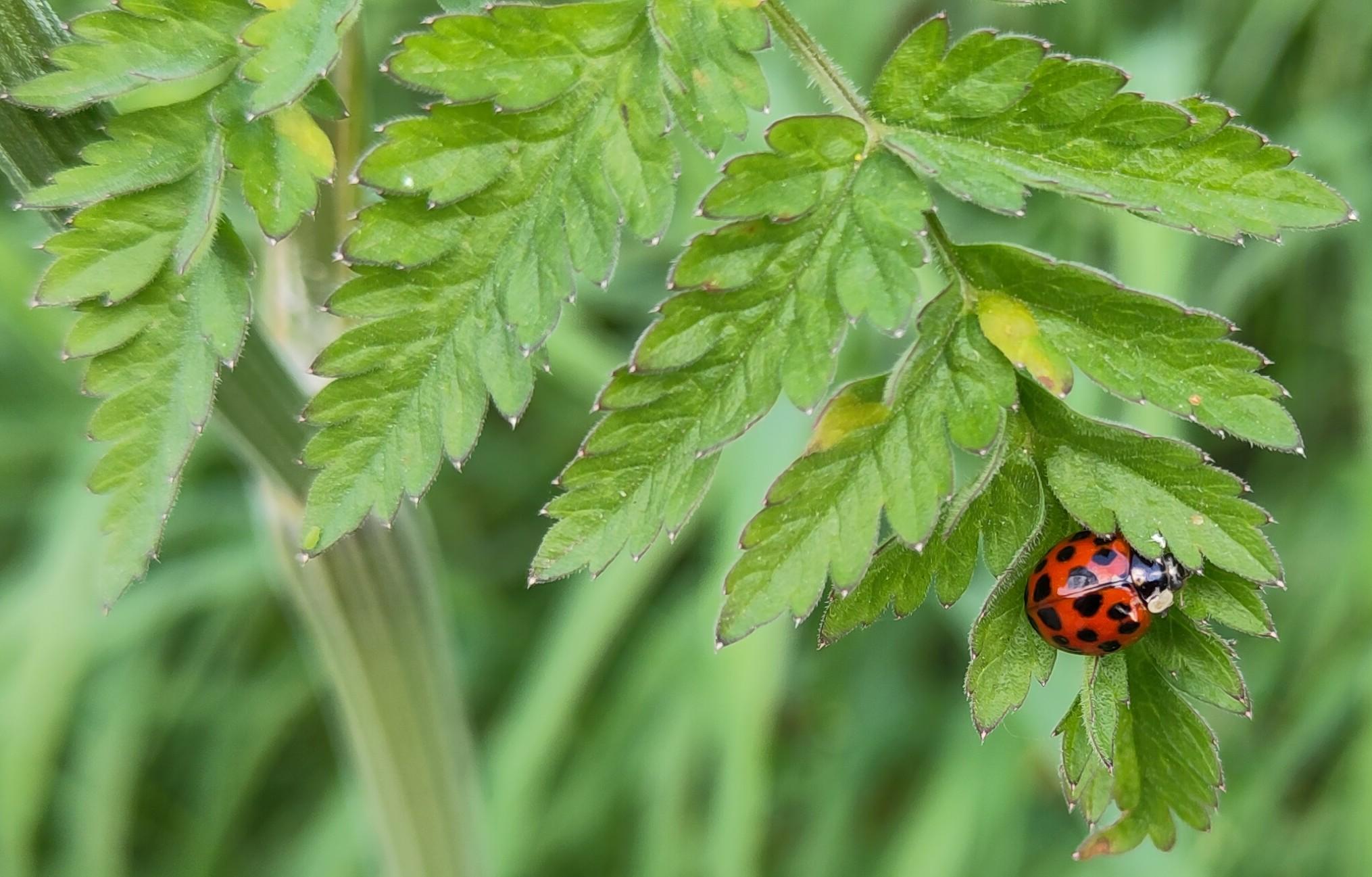 On the way back I saw a ladybird and wondered if it was one of the new invasive breed, the harlequin ladybird. I am no ladybird expert. I took a picture to research later but while the spots are nice and clear it was not much help. It was disappointing to discover that identification as less easy as some of the ladybirds are very variable in colour, size and spot number, and the harlequin is one that is hugely variable. It might be, as a white triangle at the front was mentioned as a common feature, not the shape I had been looking for.