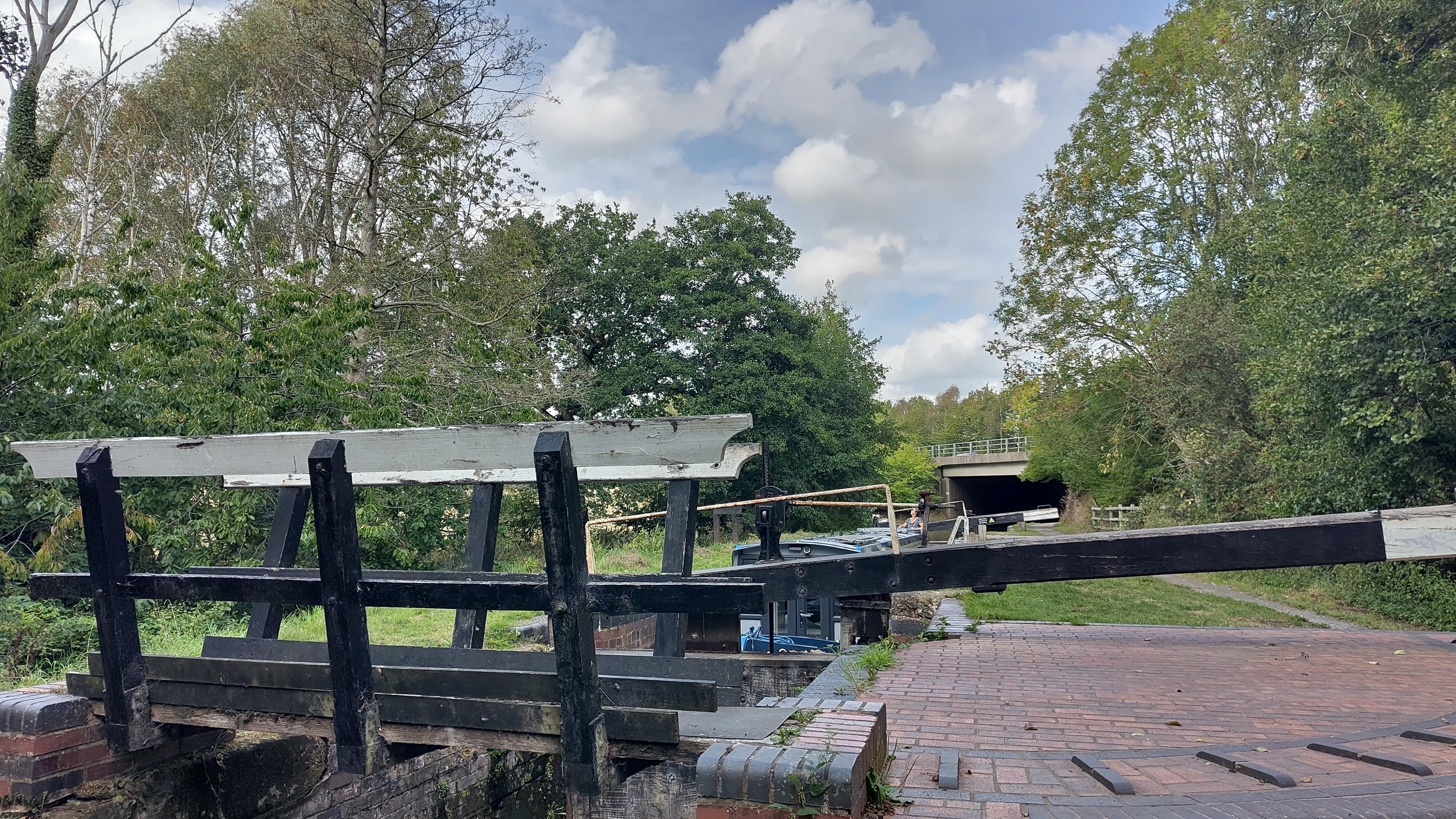 The locks here come pretty close together, nine over two miles, so it was back to one of us walking and locking while the other drove. The countryside around was very pretty, though the noise of the M40 gradually increased as we approached it. The canal has been rerouted slightly to go under the motorway at Bridge 39a, an ugly square concrete thing. For some reason another bridge, 39b, had been built over the tail of the nearby lock. It doesn't quite fit the architectural style of this canal, but is a lot prettier than its neighbour.