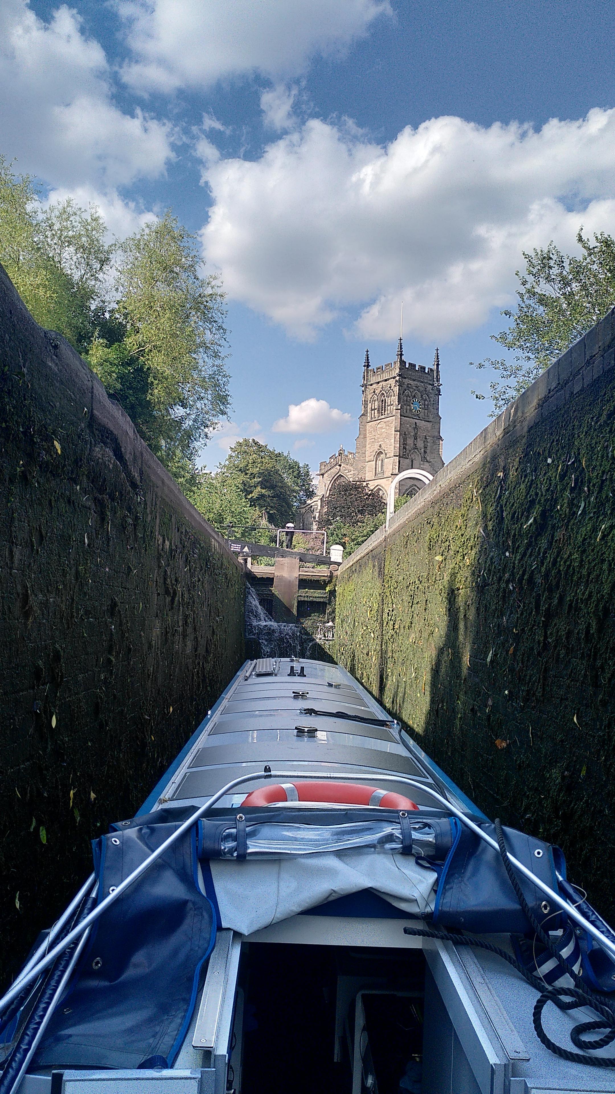 We started the day by reorganising the outside of the boat a little. The bridges on the Staffordshire and Worcester Canal that we are now on are reasonably high, but not always the same height the whole way across the canal. There are also quite a number of low-hanging branches. All of this made me quite nervous about leaving the tandem on the roof. We have asked Ortomarine to add some fixings on the roof to let us secure a tarpaulin over the tandem, but they haven’t been fitted yet.