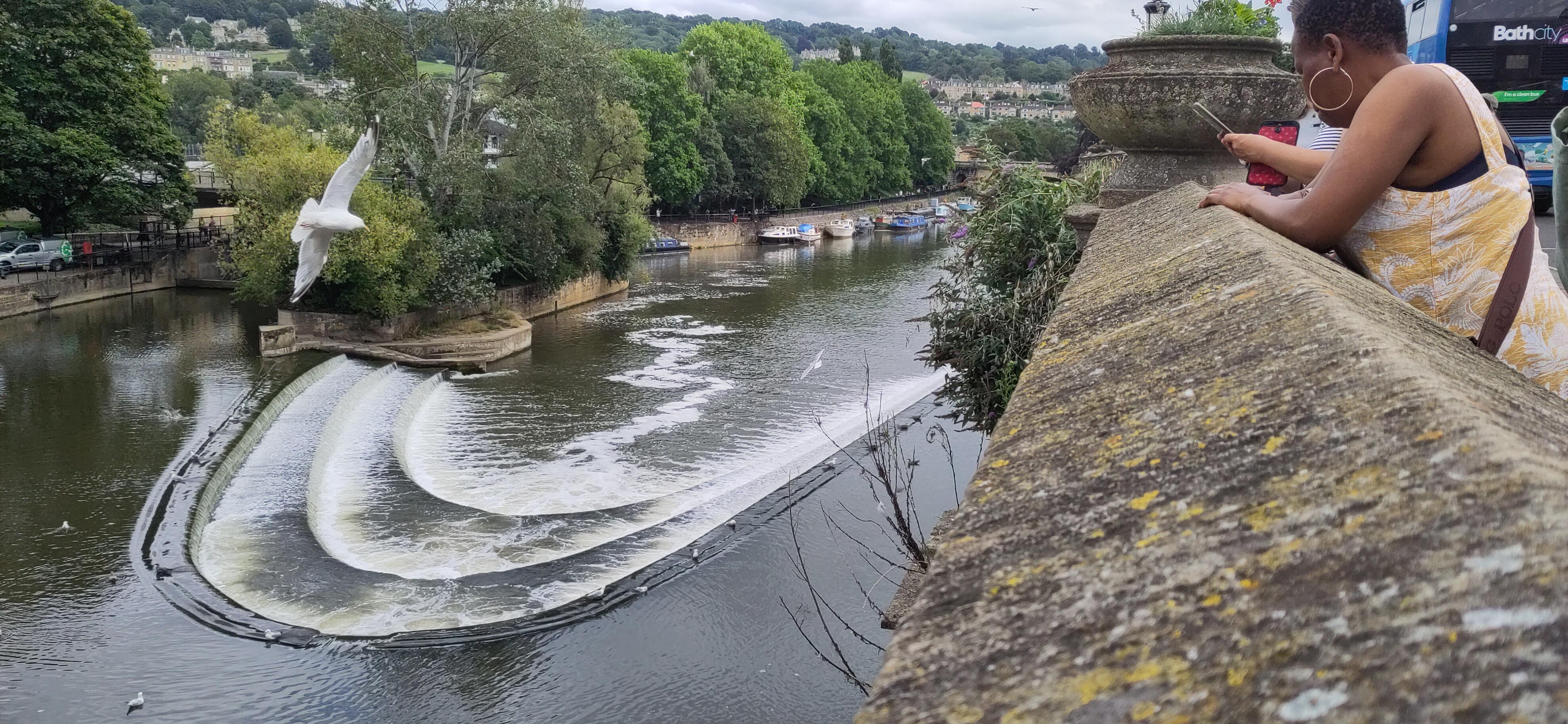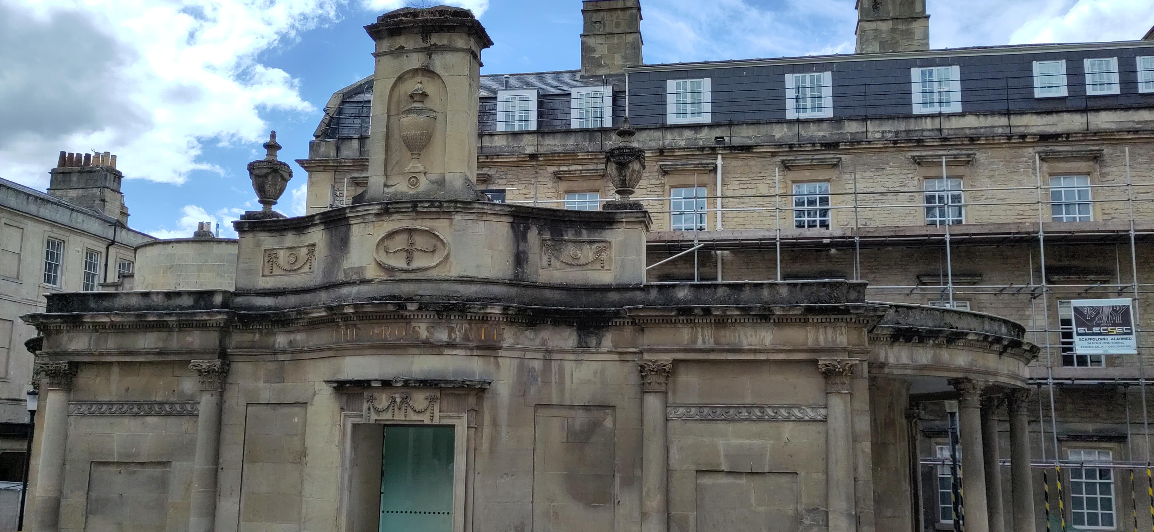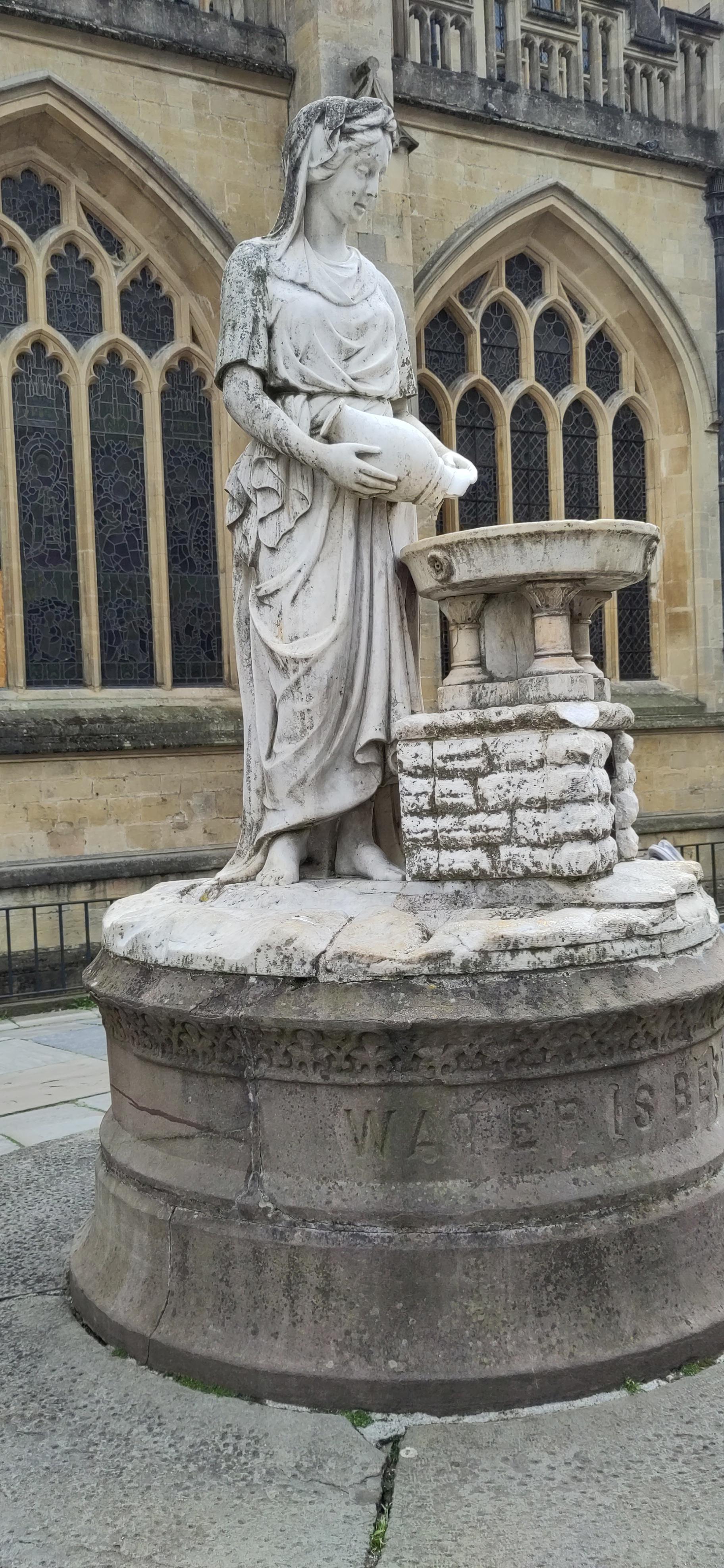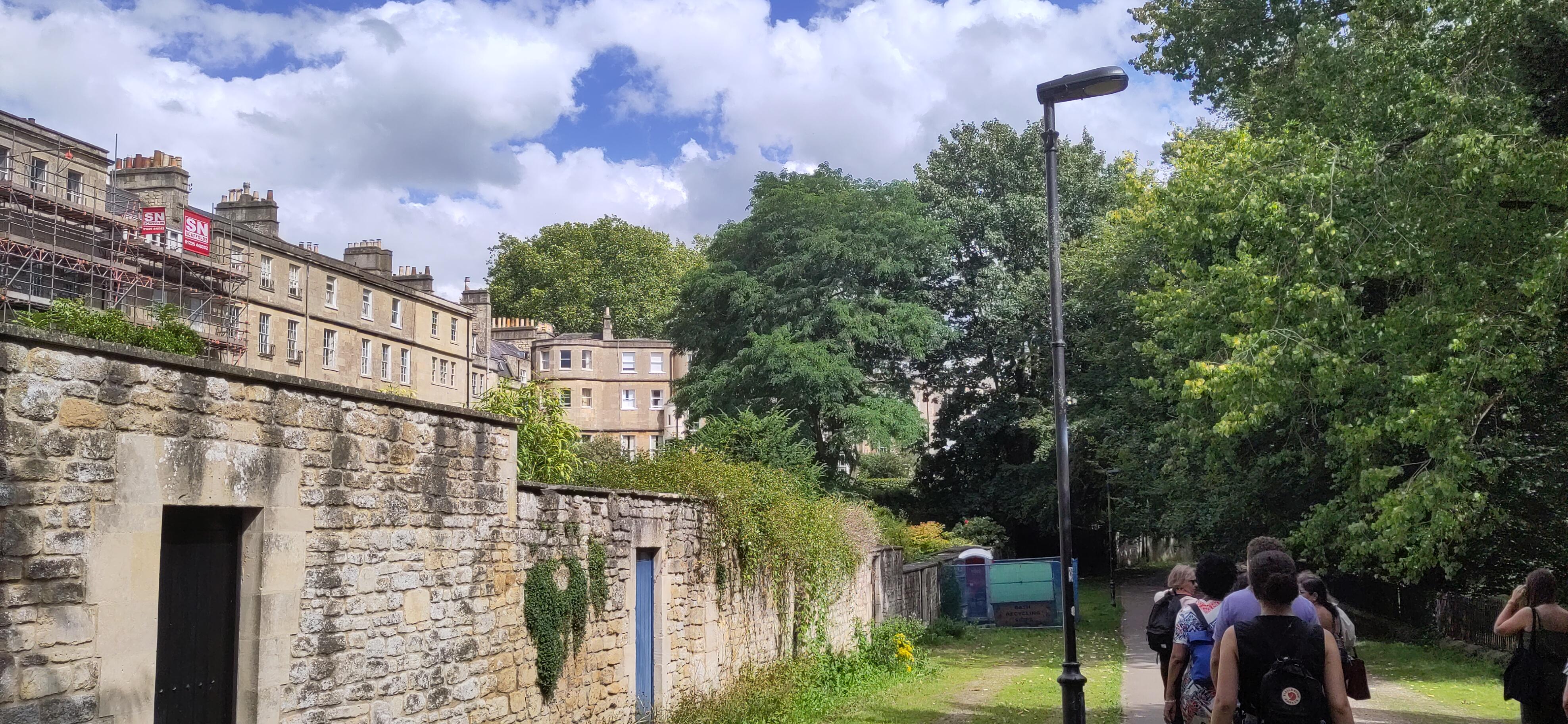 We turned up the next day and realised we hadn’t checked out the tour times. We were in time to have a little wander and return in forty minutes. There was now a large crowd gathered around a man with an umbrella held aloft and it seemed an unmanageable group. But we were divided into three groups as there were three volunteers and we were allocated to Joy. She led us to the cathedral to begin our tour and at first our stops were to places we had just been, but of course knew nothng about. Later we covered places we had not seen at all. She managed a multinational group in a calm relaxed manner and we learned about disease, toilets, architecture, Jane Austen, vaccination, Georgian nightclubs and fashion in an easy, light hearted style and two hours passed quickly.