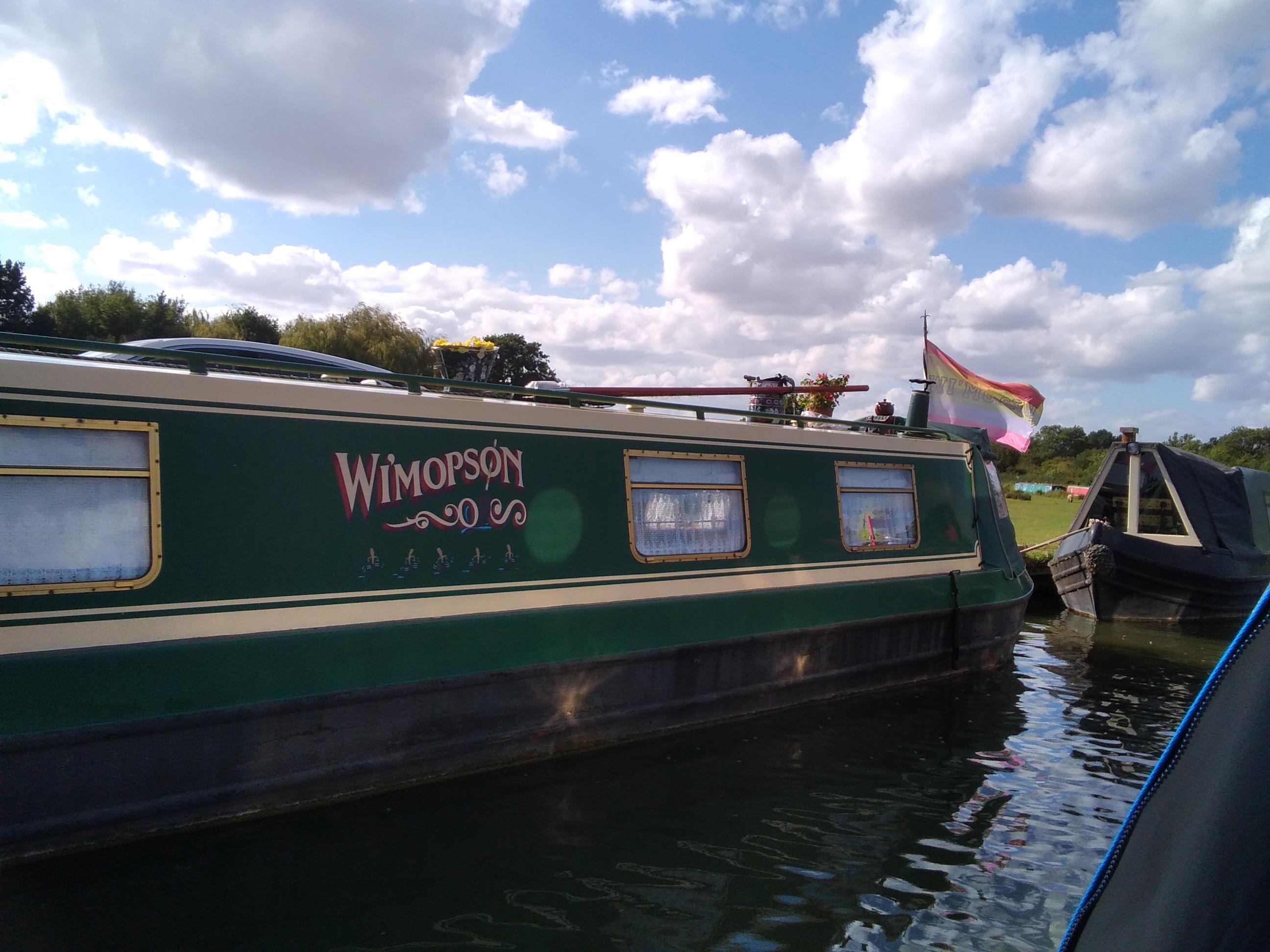 I reported back to Shane that we had a while to wait. He was filling up with water and I thought I might as well wait at the marina and take my knitting as wait at the boat. I was slightly nervous about crashing an established knitting group and disturbing their conversation, but if they were all interested in boats and knitting, they must surely be friendly! And of course I was indeed warmly welcomed and invited to pull up a chair. The woman next to me (if you read this, I am so sorry I have forgotten your name, as you did introduce yourself) made warm and enthusiastic conversation and informed me of a spectacular display of knitted structures in nearby Cosby. Amazing water themed designs are on show until September 4th. I was soon introduced to the Scottish member of the knitting group, from Glasgow, who had heard of Fochabers and often goes to Cullen. In the short time we had covered boat travels, blogs, canal television programmes, cancer treatment, rescuing an inflatable pool, the meaning of blether/blather and even a little about knitting – though I did only knit a couple of rows. It was a delight to meet them and they gave permission to be blogged. They don’t meet tomorrow but if I am here again I will certainly drop in – 10.00 till 12.00 on a Saturday – and bring my 20p for milk ( not needed today) – Thanks for extending the needles of friendship and allowing me to take a photo.