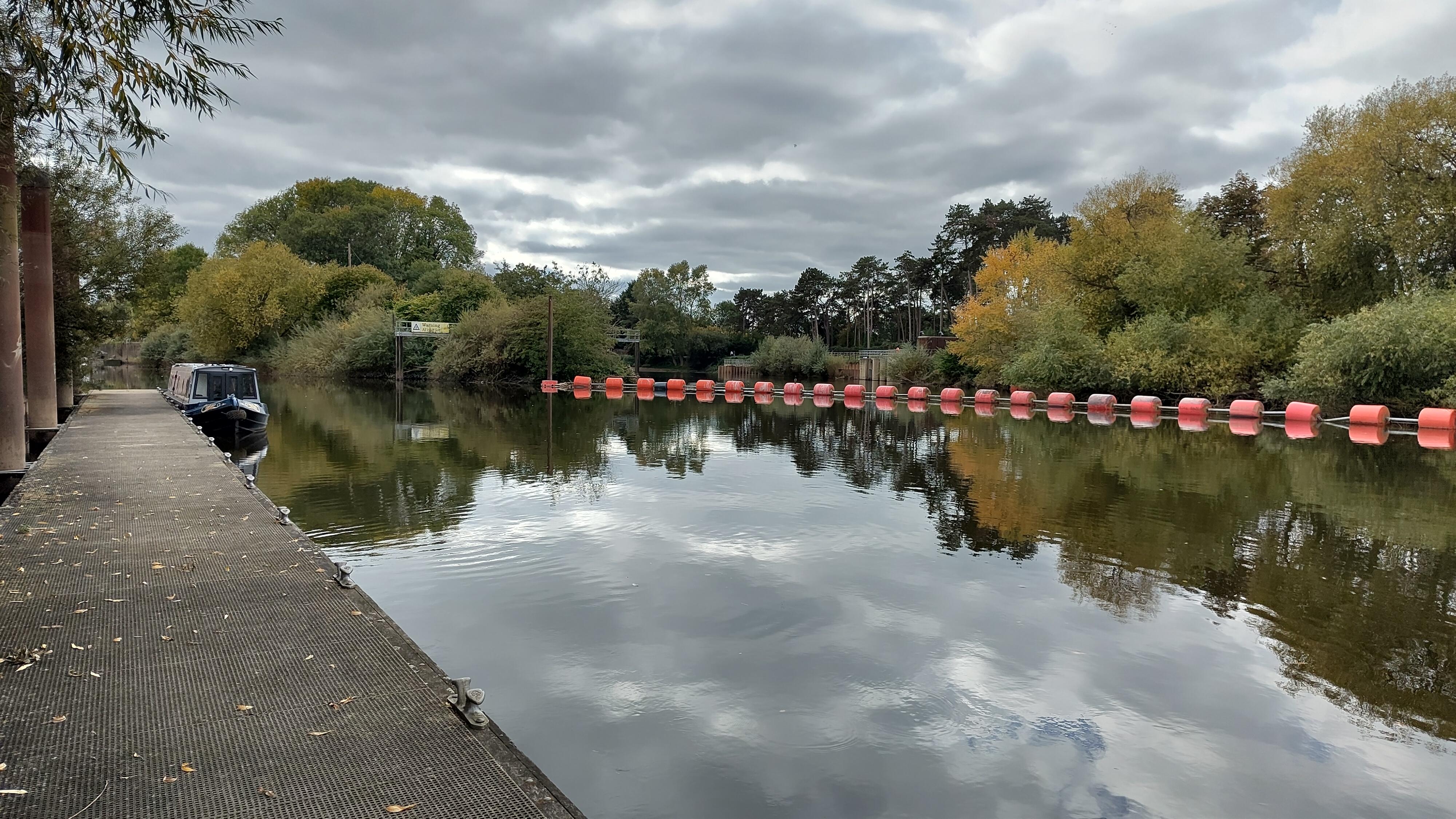 The rule of the river is to keep right, but just before we reached Worcester, I saw some navigation buoys in the water. These were green and triangular and sitting in the middle of the river. The rule, going upstream, is "keep the green floaty things on the right" (a variation on a notice we saw in Abingdon). It didn't feel like the right thing to do on this left-hand corner, but the buoys weren't there by accident. I reduced speed a little, just in case, but everything worked as it should.