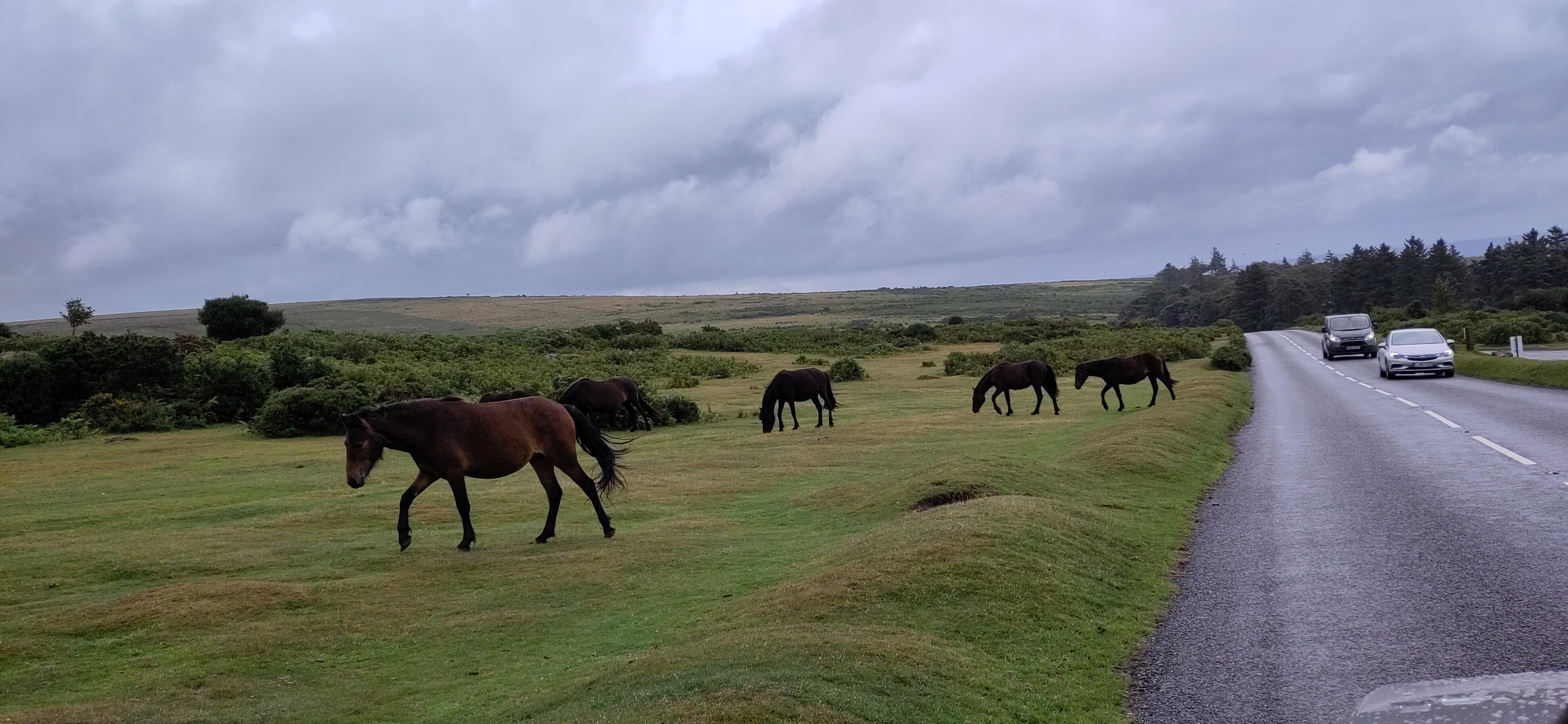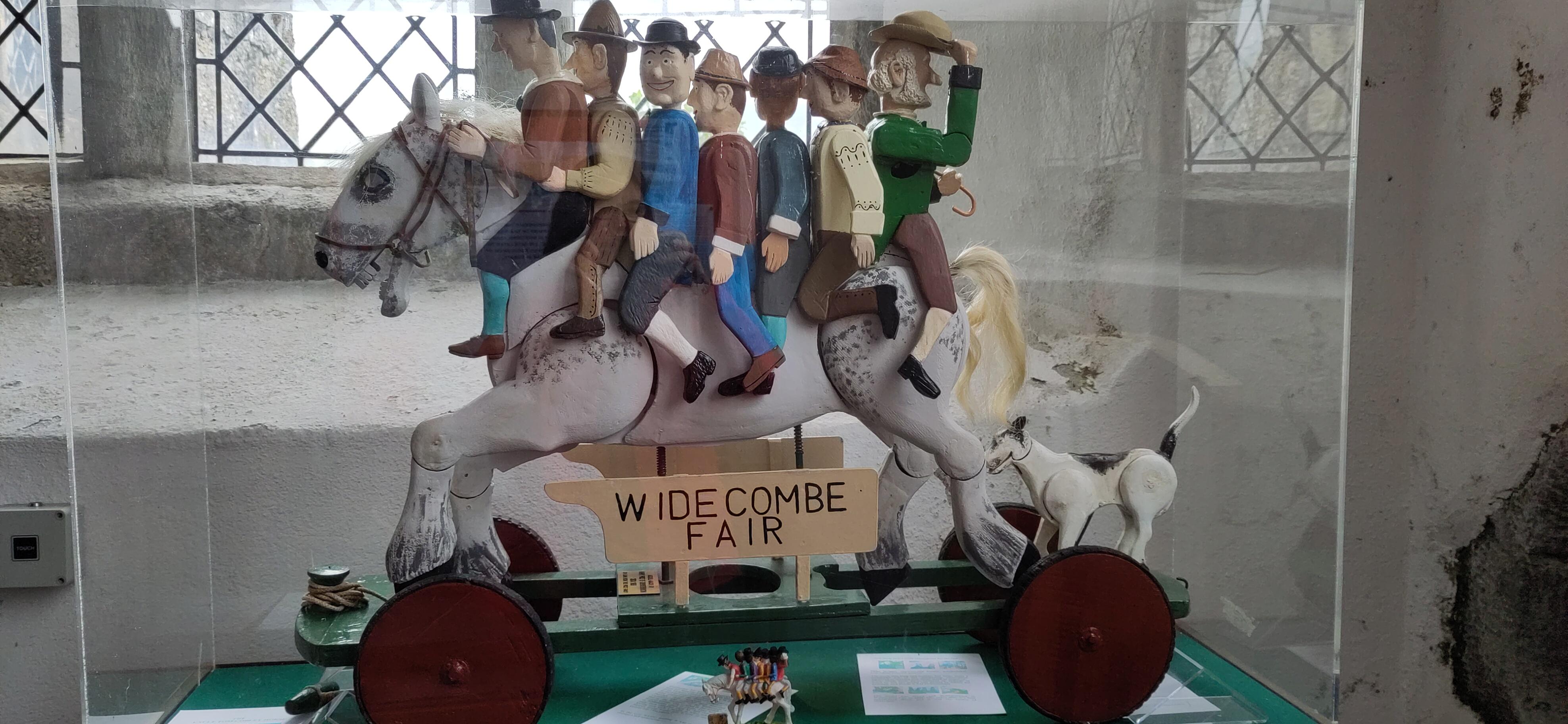 The forecast for the next day was very wet so we headed for the museum in the morning. It is in the old station but covers a wider range of topics than the railway. Quarrying, mining, pottery, Cromwell and the war featured. There was a helpful volunteer there, who suggested we go to Widecombe on the moor which was a short drive over Dartmoor with some cafes and a church. The wet weather was all the more atmospheric for the moorland. The smell of pasties was appealling but we headed off to the gift shops (with cuddly pasties) and church (with wildlife welcome and a model horse, a grey mare to be precise) first. The Widecombe Fair wasn’t on (I hope they get better weather for it) but the song featured in many places.