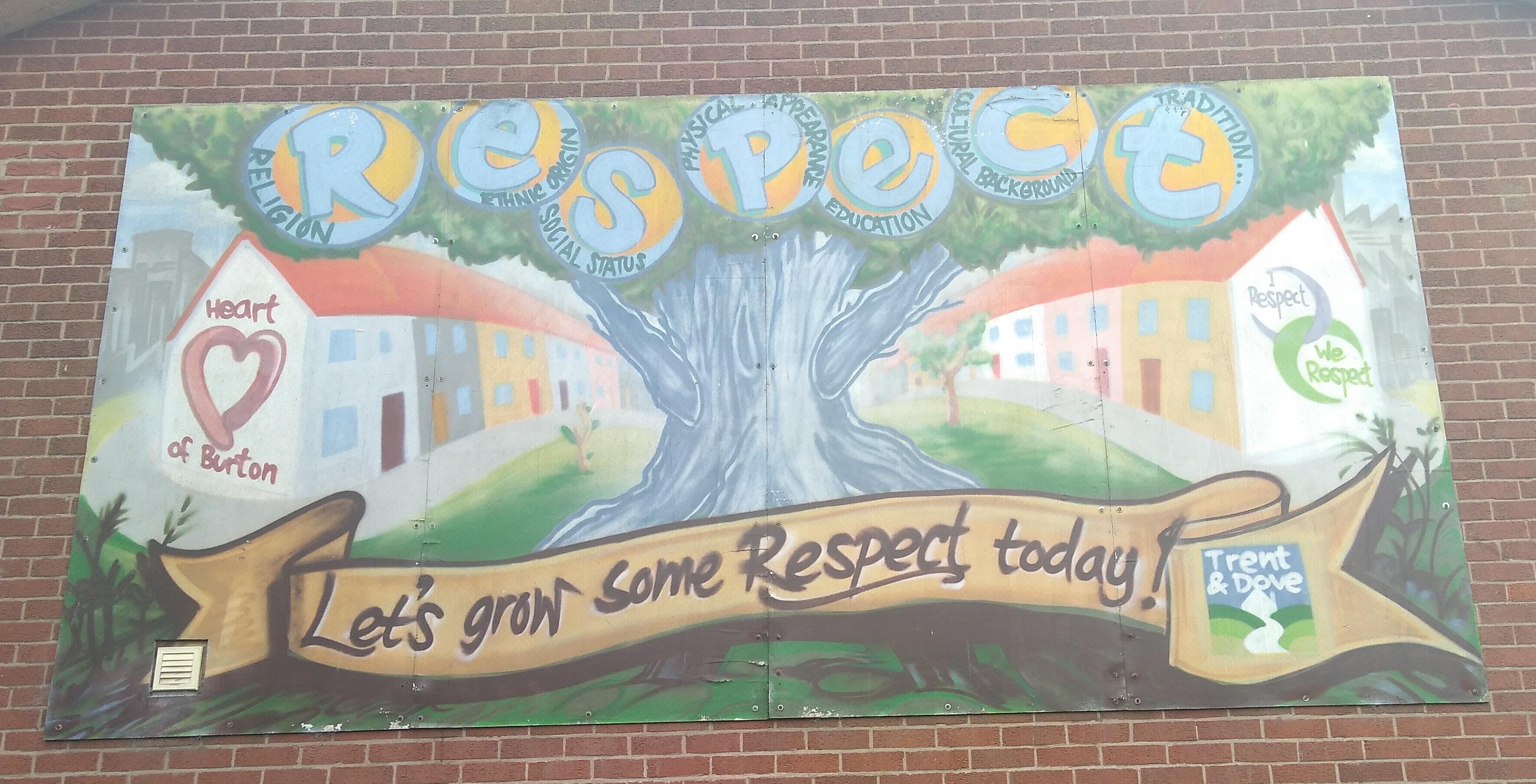 Near the canal I saw a pastel coloured mural, which attracted my attention. It reminded me of the sort of thing that would be created at Woodcraft Folk event, with which I was so heavily involved when the boys were young, both the values and the tree symbol. I remember so many craft activities, social justice, nature and co-operation activities. I especially enjoyed these at camps.