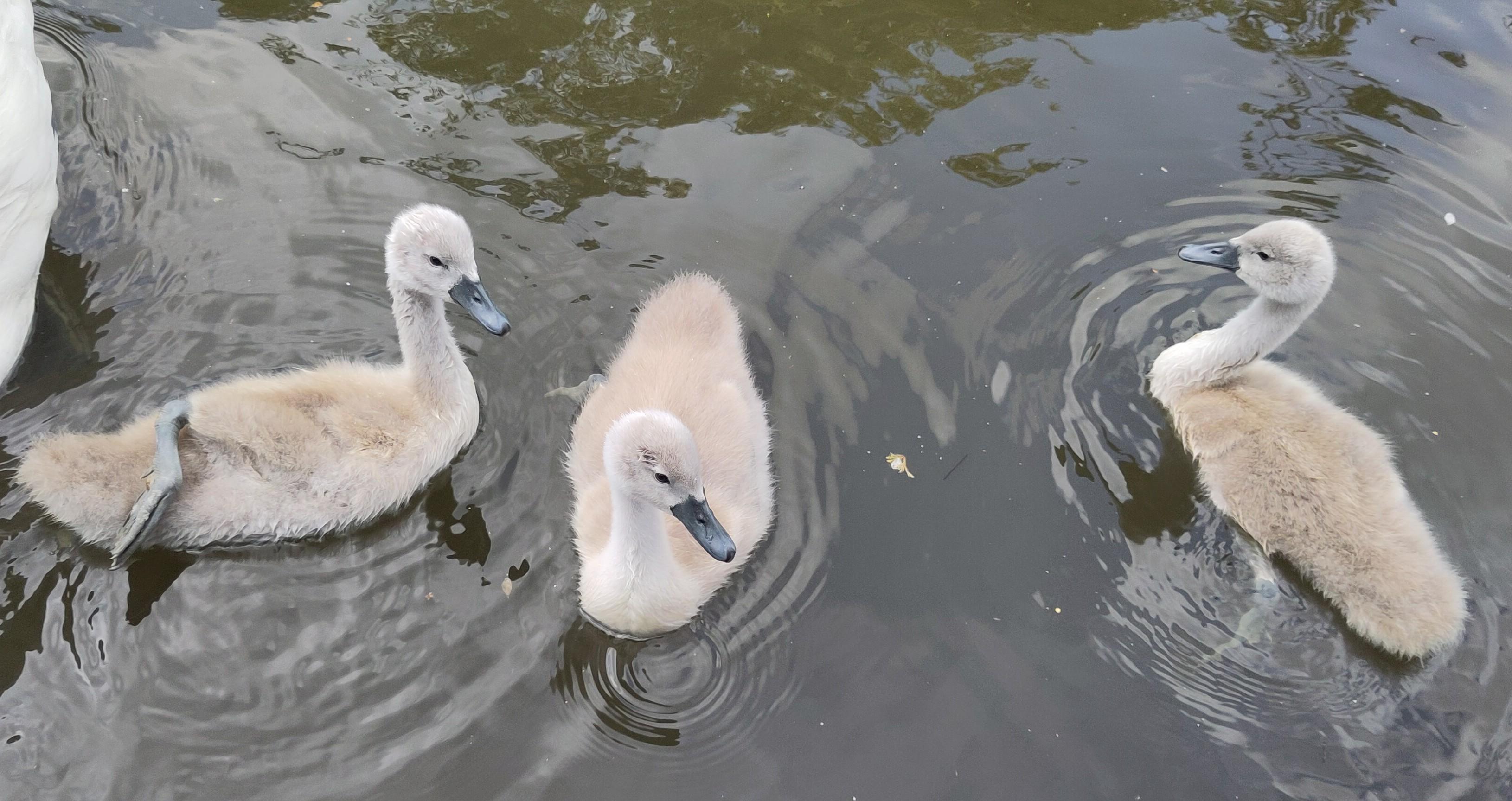 We got a quick look at some webbed feet in action when a group of goslings on the bank, strangely, decided they were safer in the water than the bank as we drove past, gradually letting themselves into the water, gripping the grassy edge before plopping down. It was fun to watch them all go in.